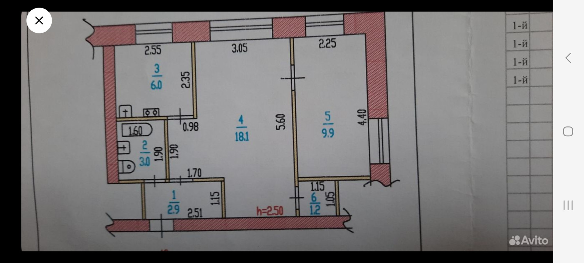 Высота потолков 2.5 м