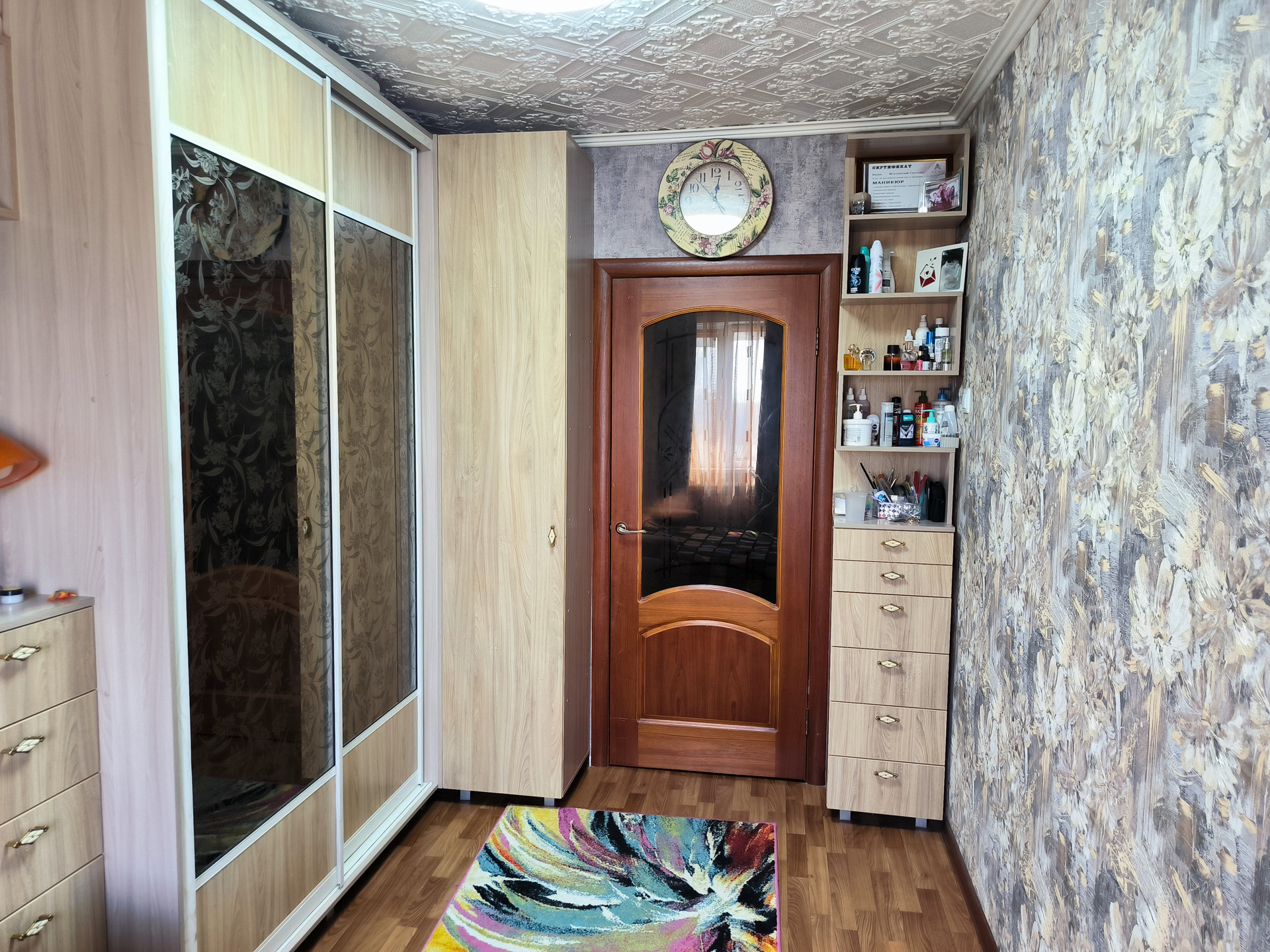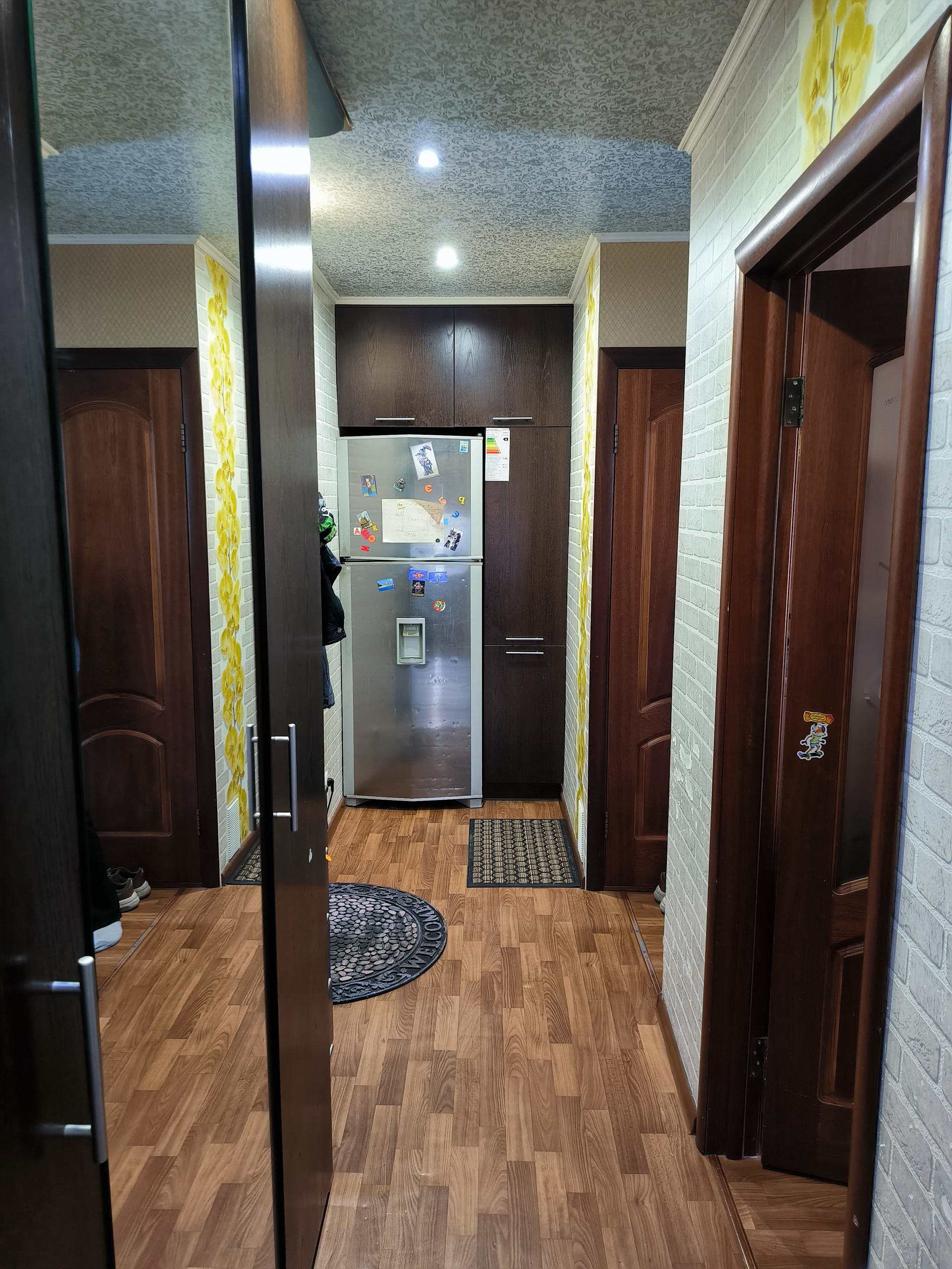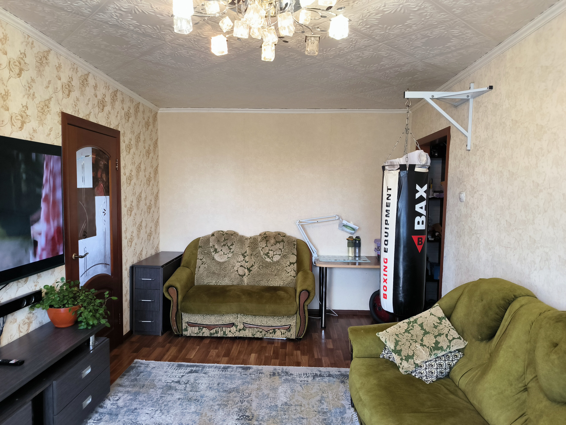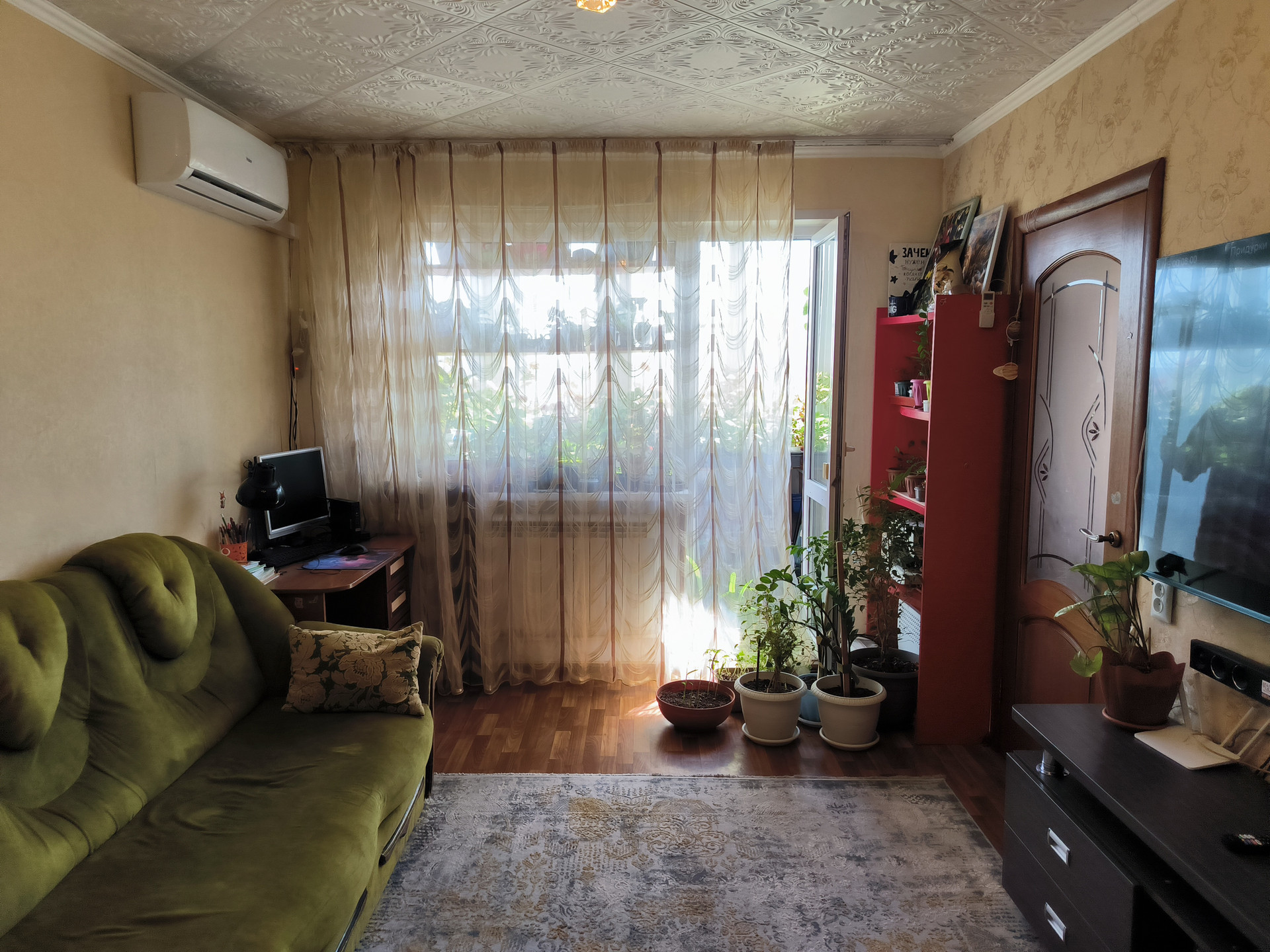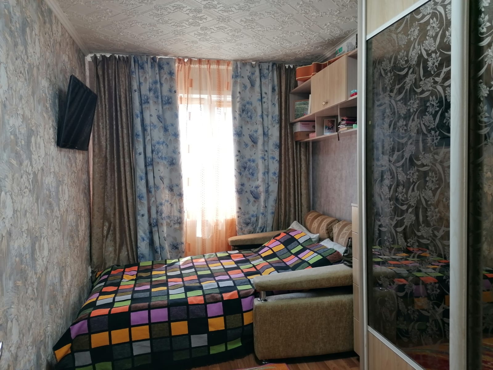 Светлая и уютная квартира для большой семьи. В квартире проведен ремонт, напольное покрытие линолеум, современные двери, отделка потолка, ванная отделана кафелем, балкон остеклен и оснащен системой теплый пол. Окна выходят во двор что уменьшает шумность.