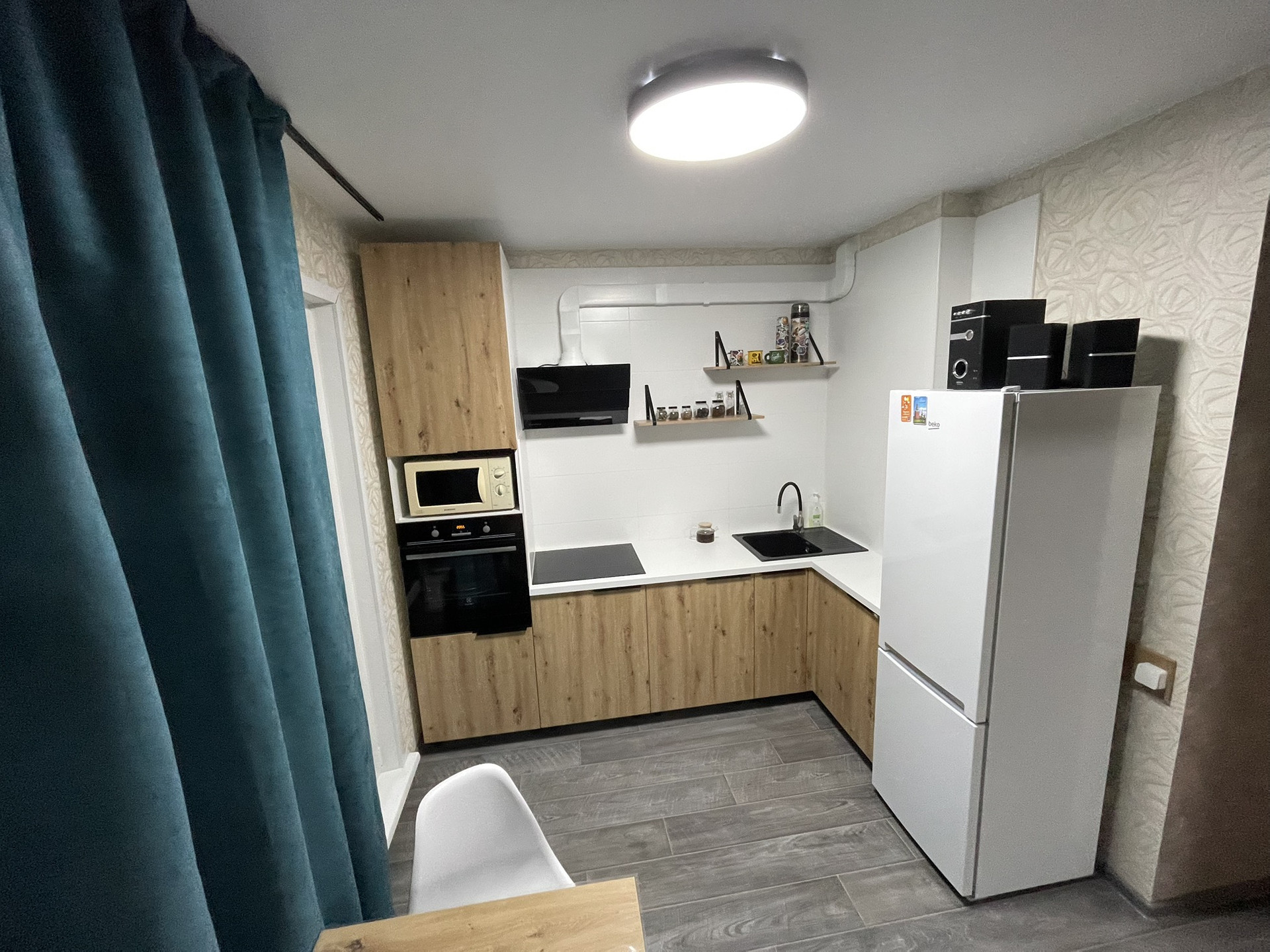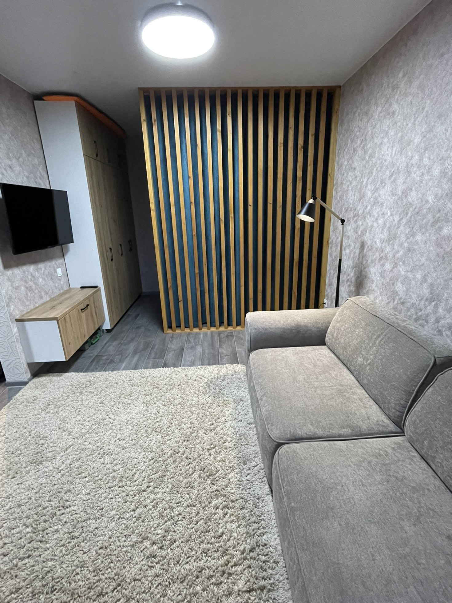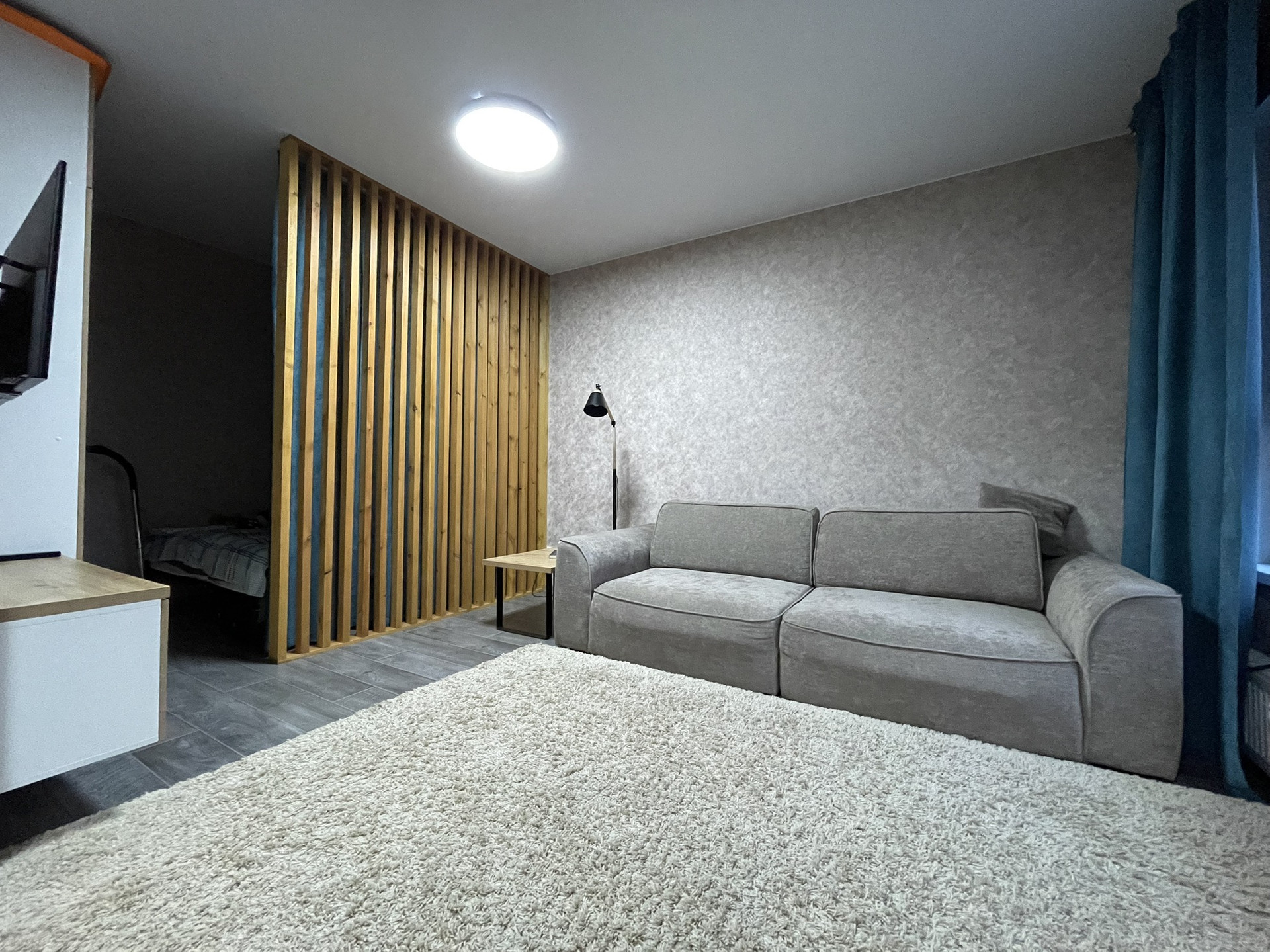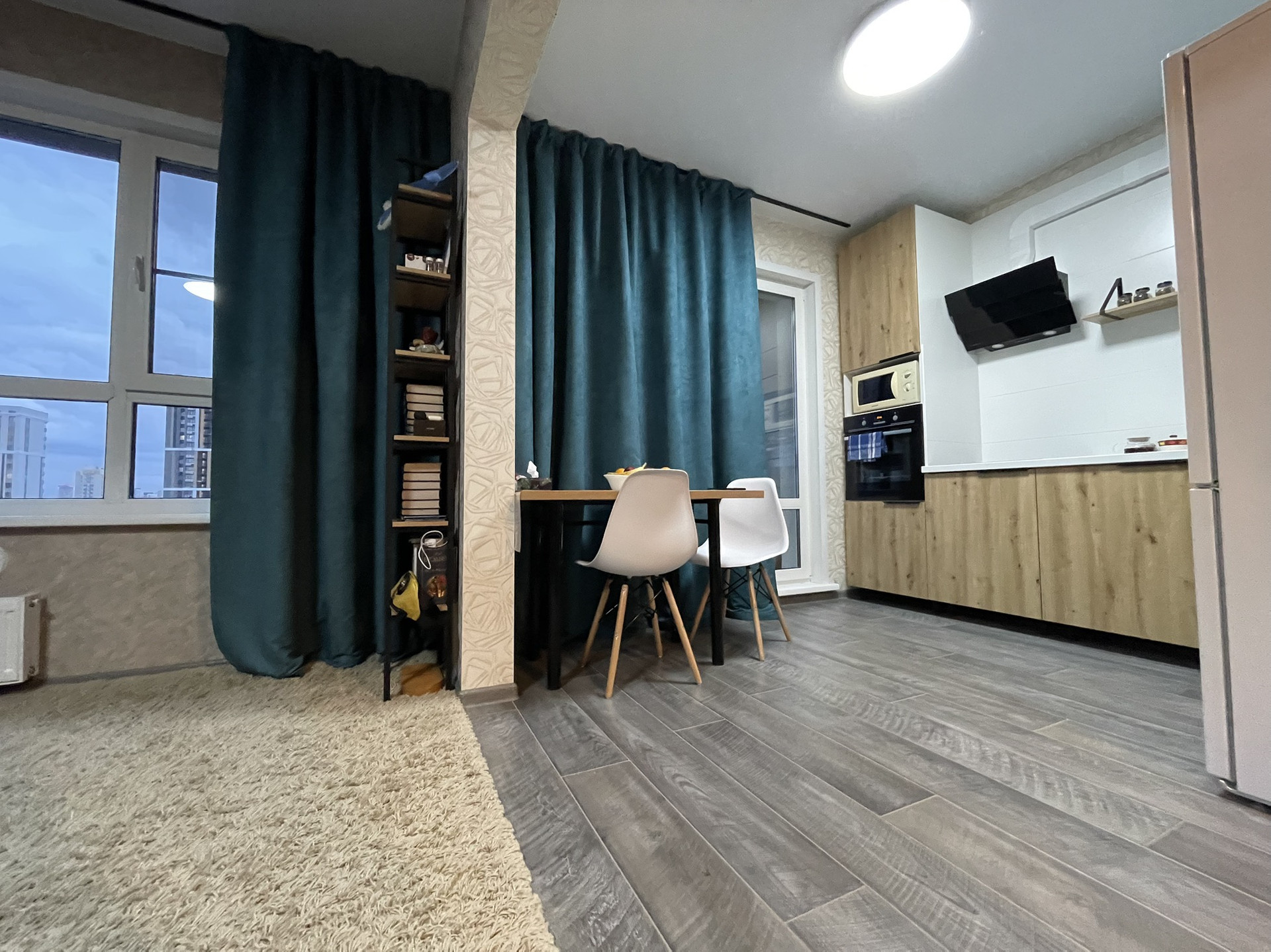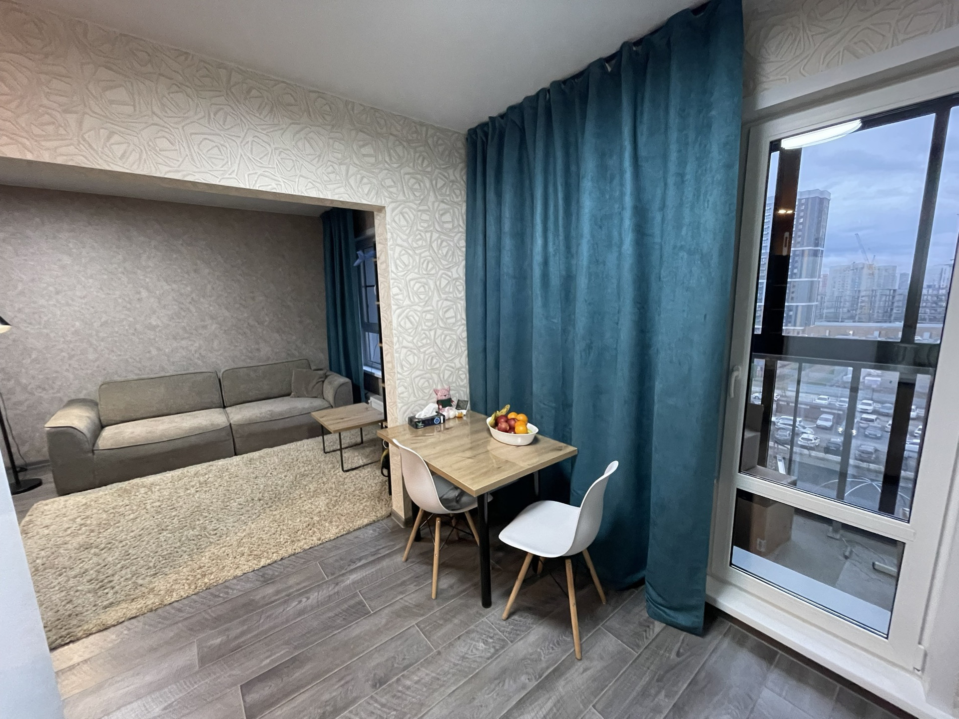 Квартира укомплектована мебелью в одном стиле, так же остается часть техники. За счет зонирования зоны сна, кухня-гостиная получилась просторной , более 20кв.м.