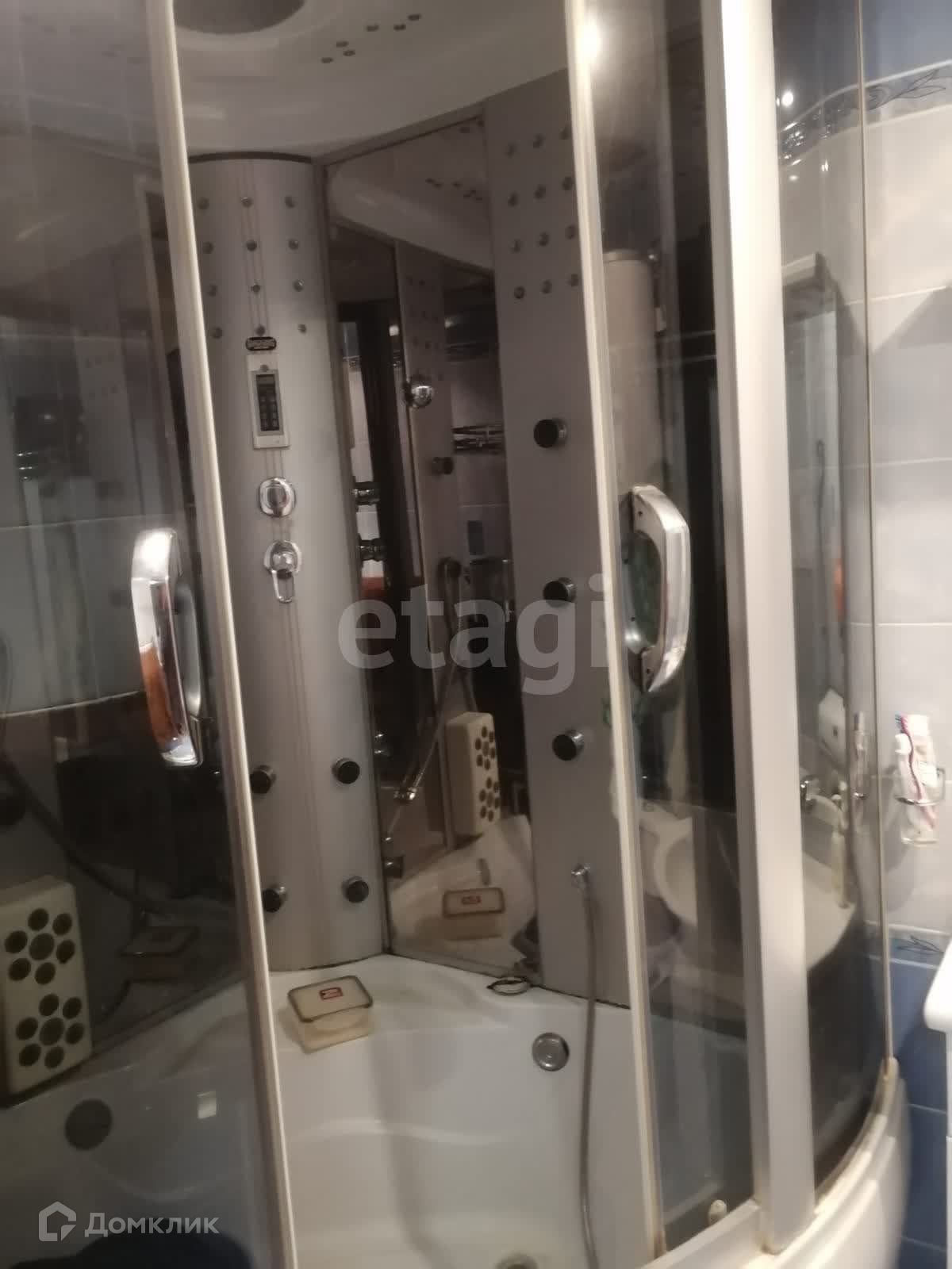 В квартире остаётся мебель, кухня, плита с духовым шкафом, вытяжка, холодильник. В ванной душевая кабина, стиральная машина, шкафчики, водонагреватель. Спальный гарнитур, огромный шкаф в прихожей.