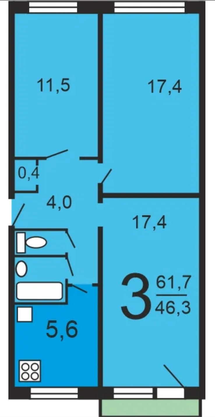 Общая площадь 61.1 м2