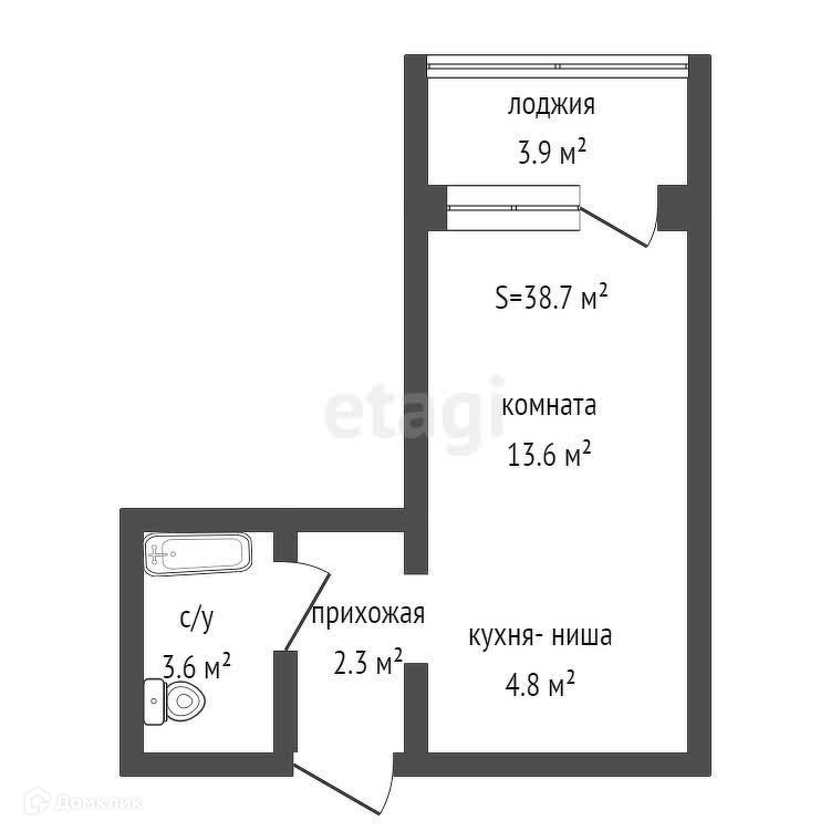 Общая площадь 28.7 м2
