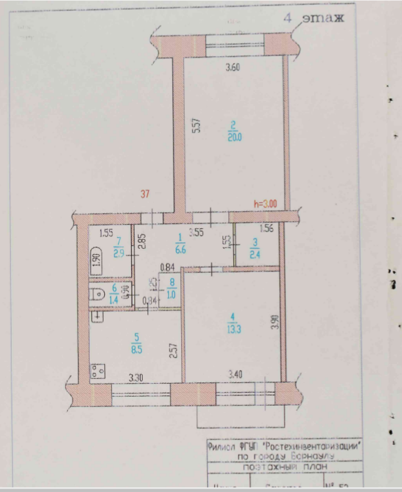 2-комнатная квартира, 56.1 м2, этаж 4 / 5, на продажу в Барнауле, улица Глушкова, 52