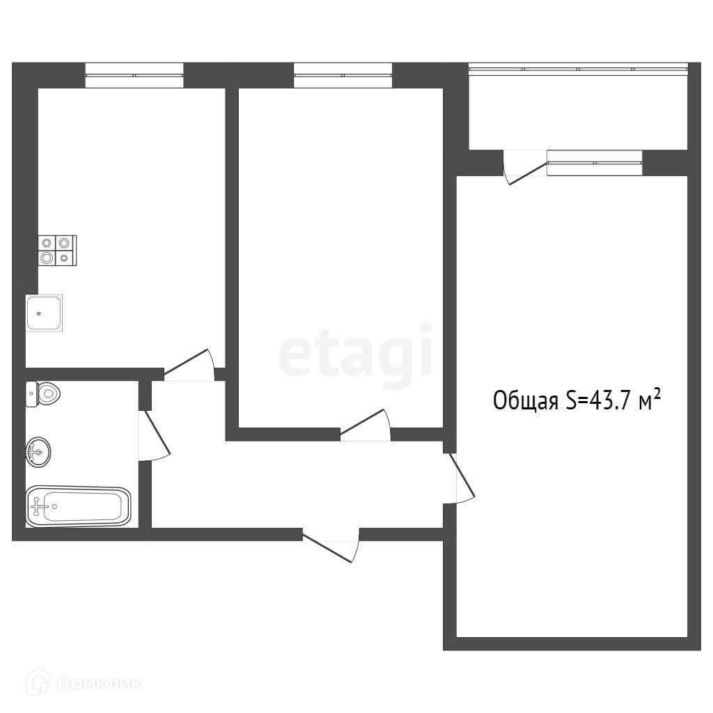Общая площадь 43.7 м2