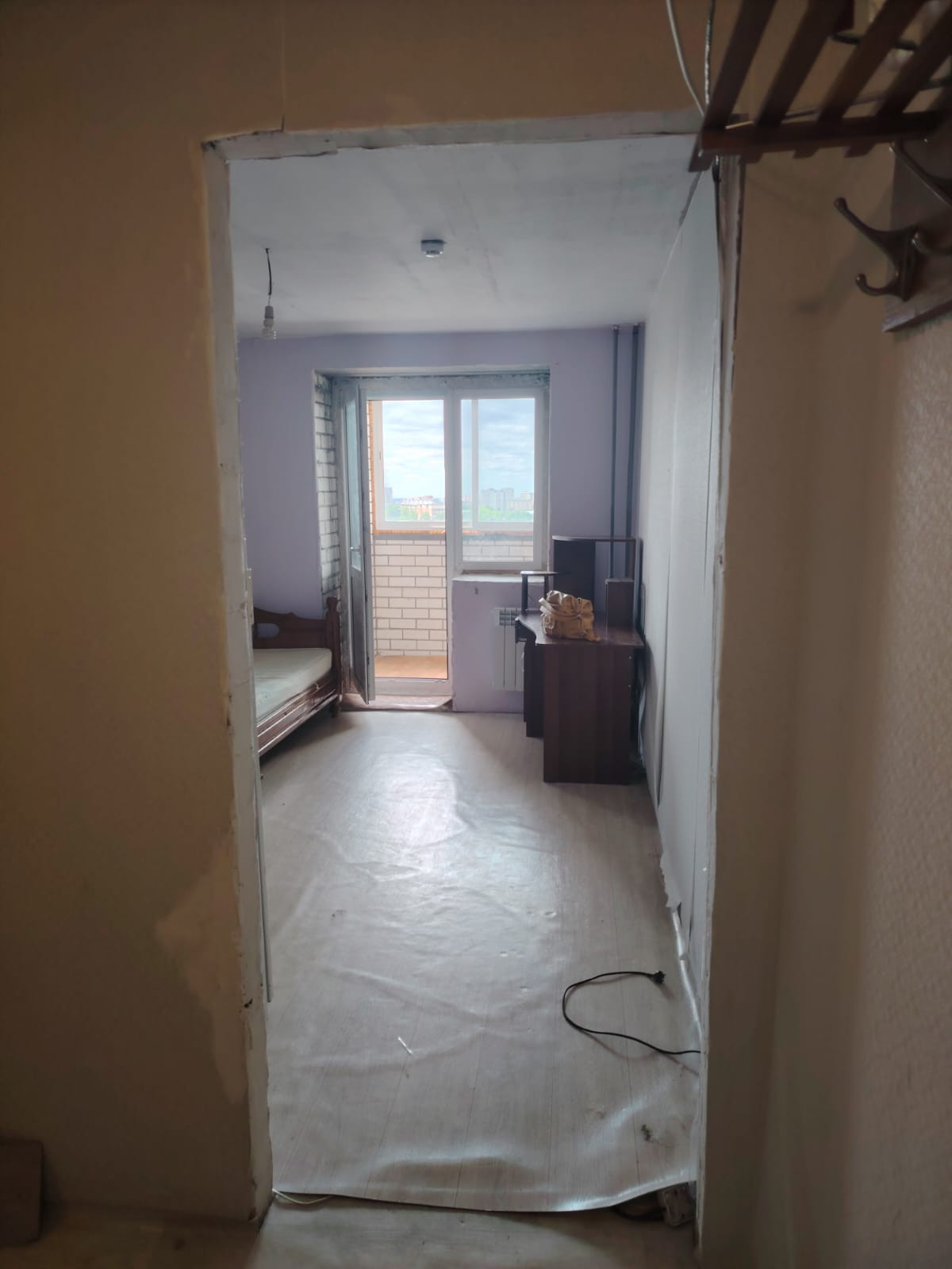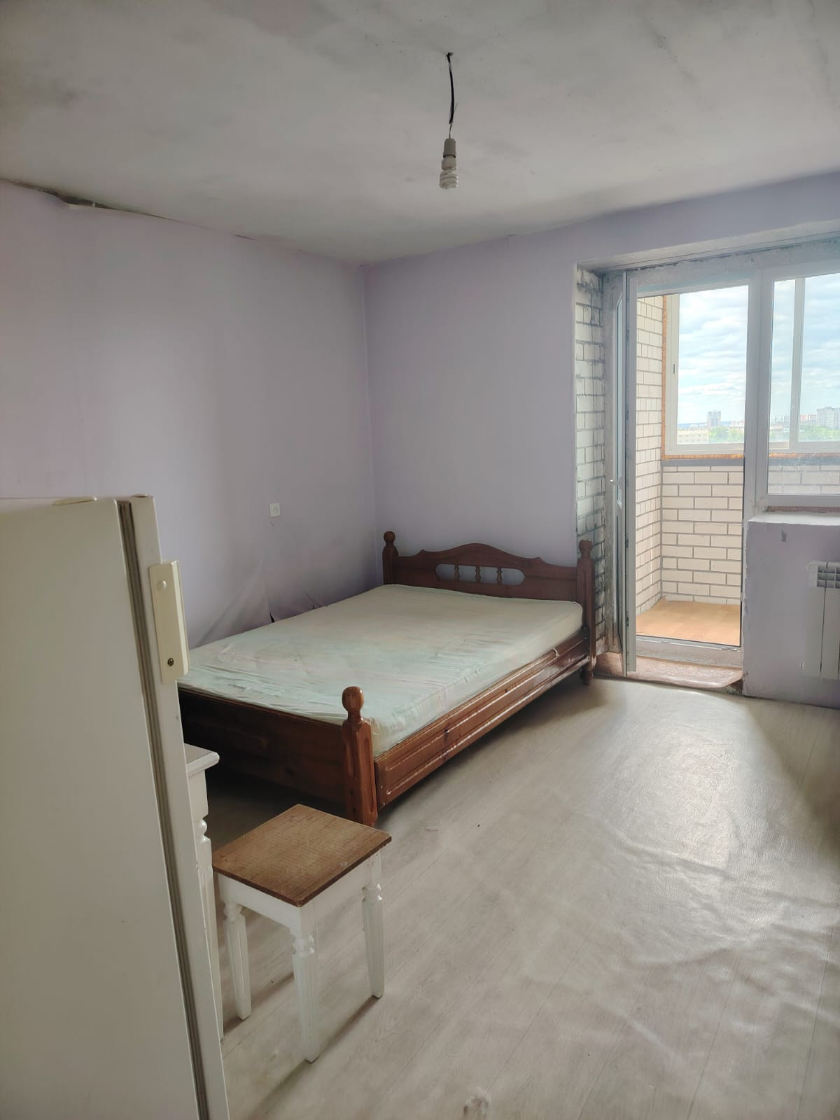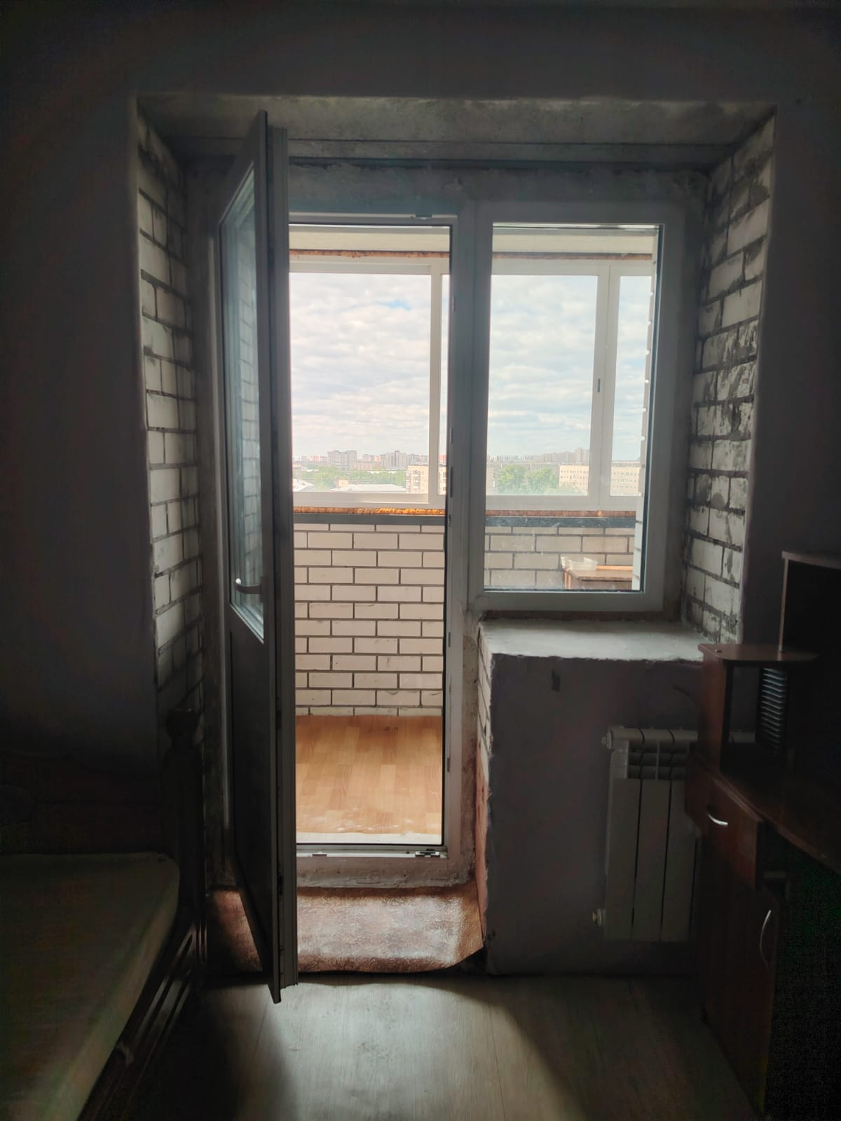 Студия 21 кв м в новом доме по Гущина 175, квартира на 12 этаже, в середине дома, большая лоджия застеклена пластиком, установлена сантехника, состояние удовлетворительное.
