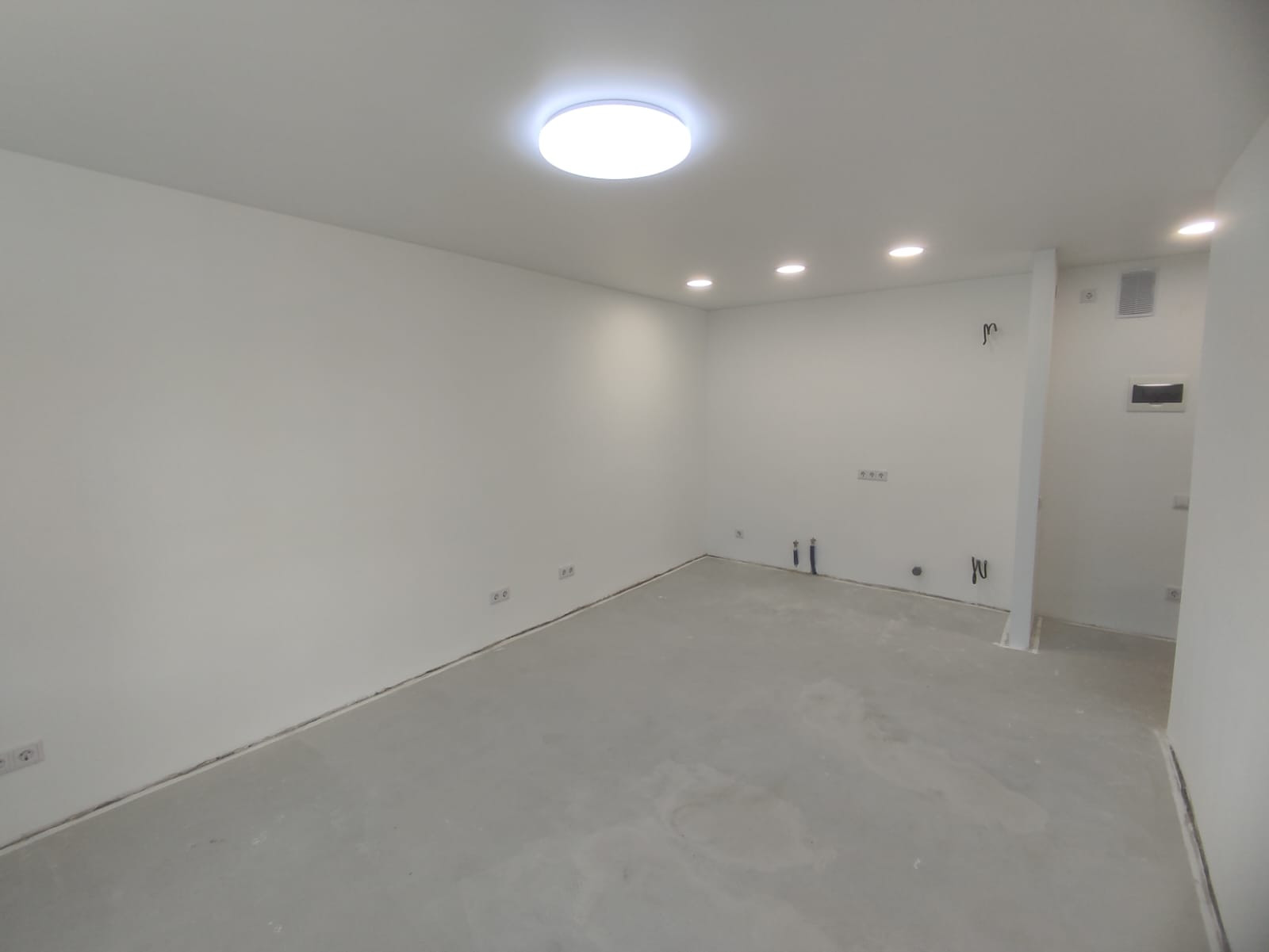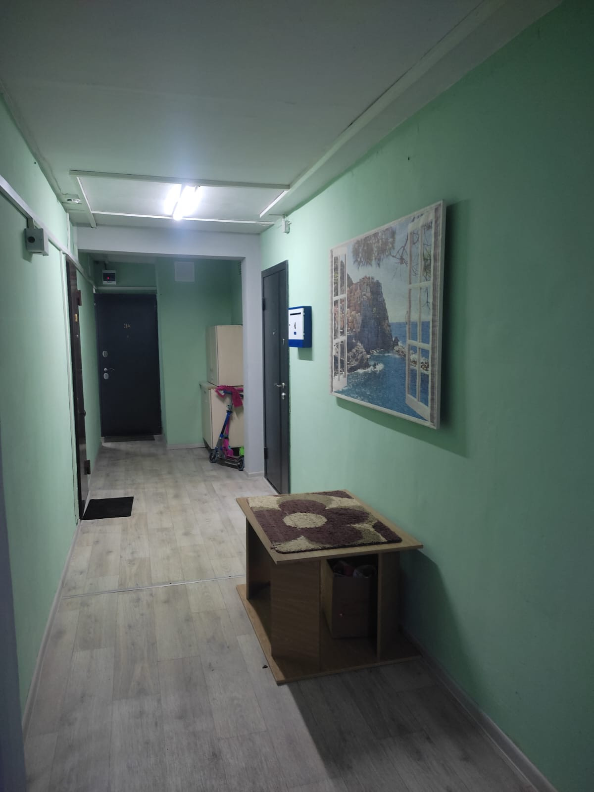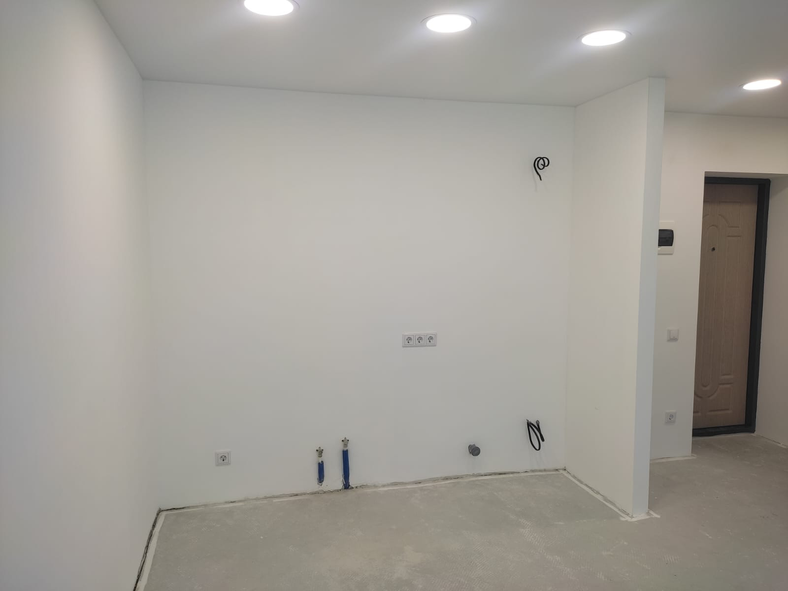 Сделан ремонт. стены окрашены водоэмульсионкой, пол утеплен, водопровод, электрика. отсталось покрыть пол и двери межкомнатные.