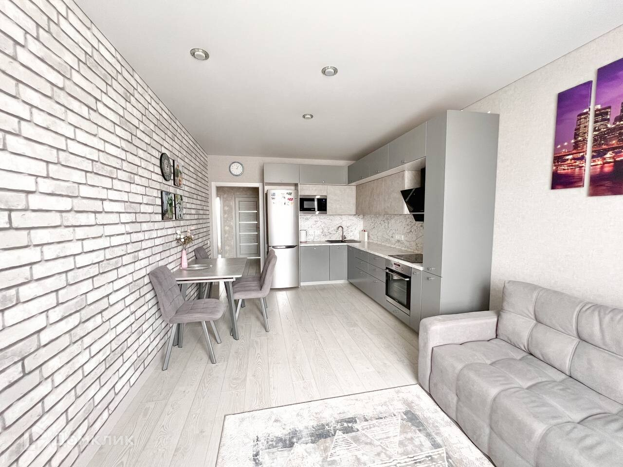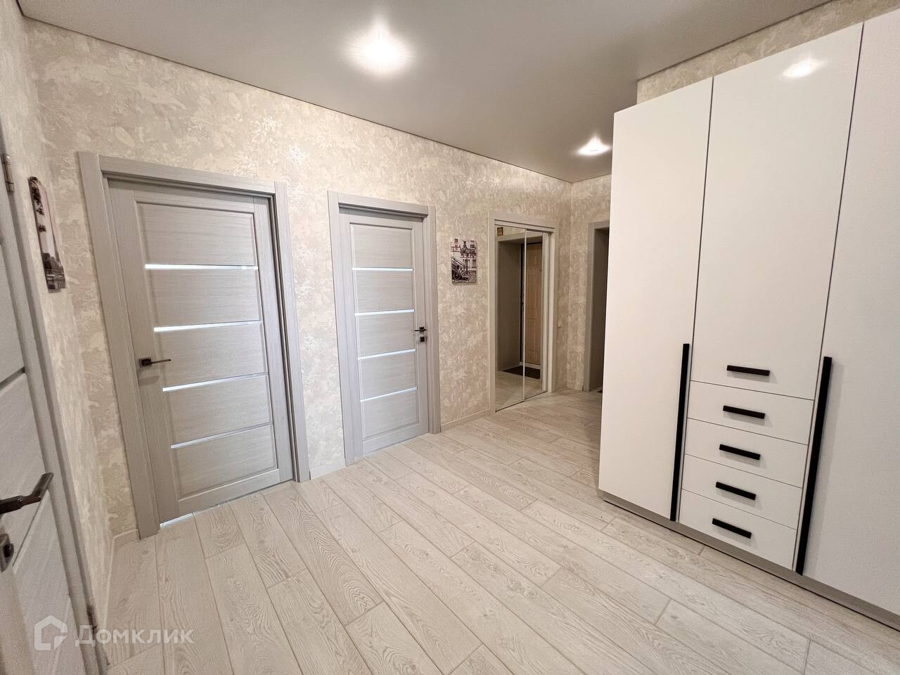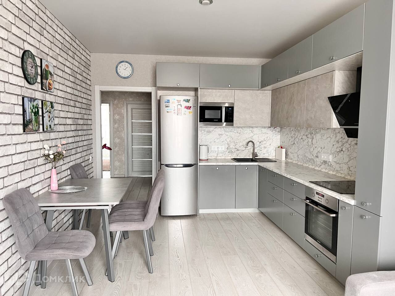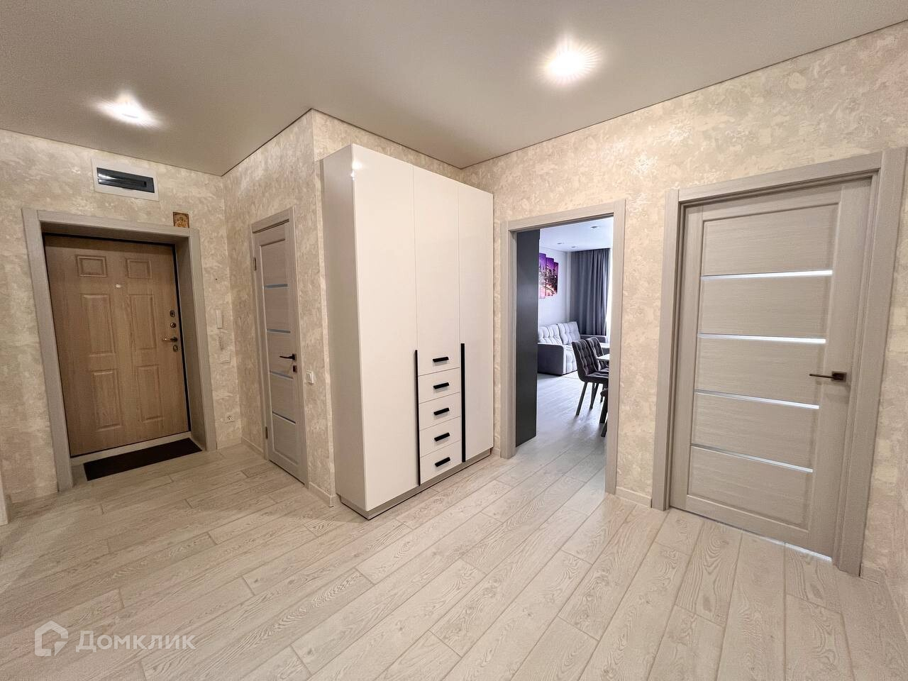 В стоимость также входят: вещевой шкаф в гардеробной, современный кухонный гарнитур со встроенной бытовой техникой, холодильник, посудомоечная и стиральная машины, вытяжка, микроволновка, кондиционер и водонагреватель.
