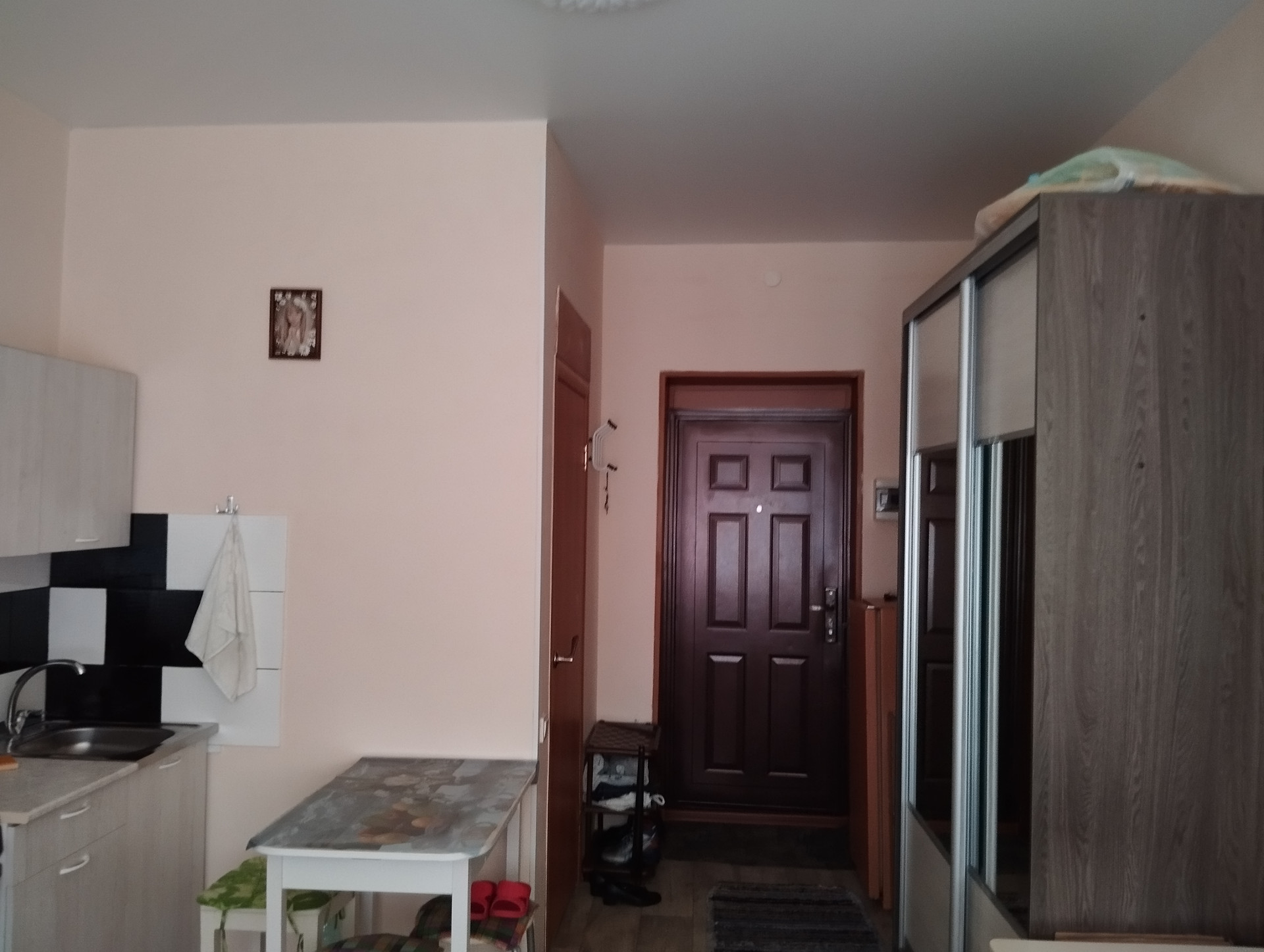 Уютная студия на 1 этаже в кирпичном доме. Год постройки 2009.  Комната просторная, светлая, высокие потолки, на полу  линолеум. Кухня остается. Рассмотрим любой вариант расчета. помощь в оформлении ипотеки. Низкие коммунальные платежи.