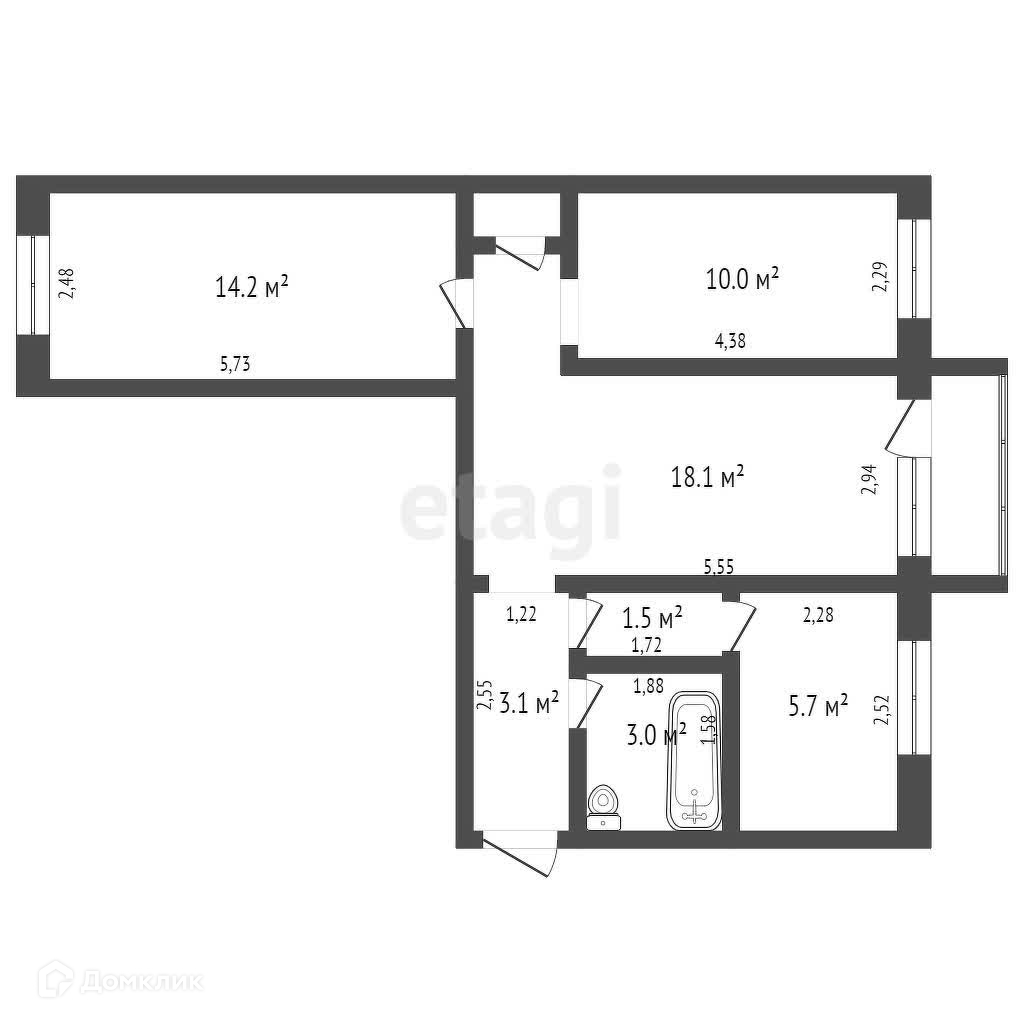 Общая площадь 56.2 м2