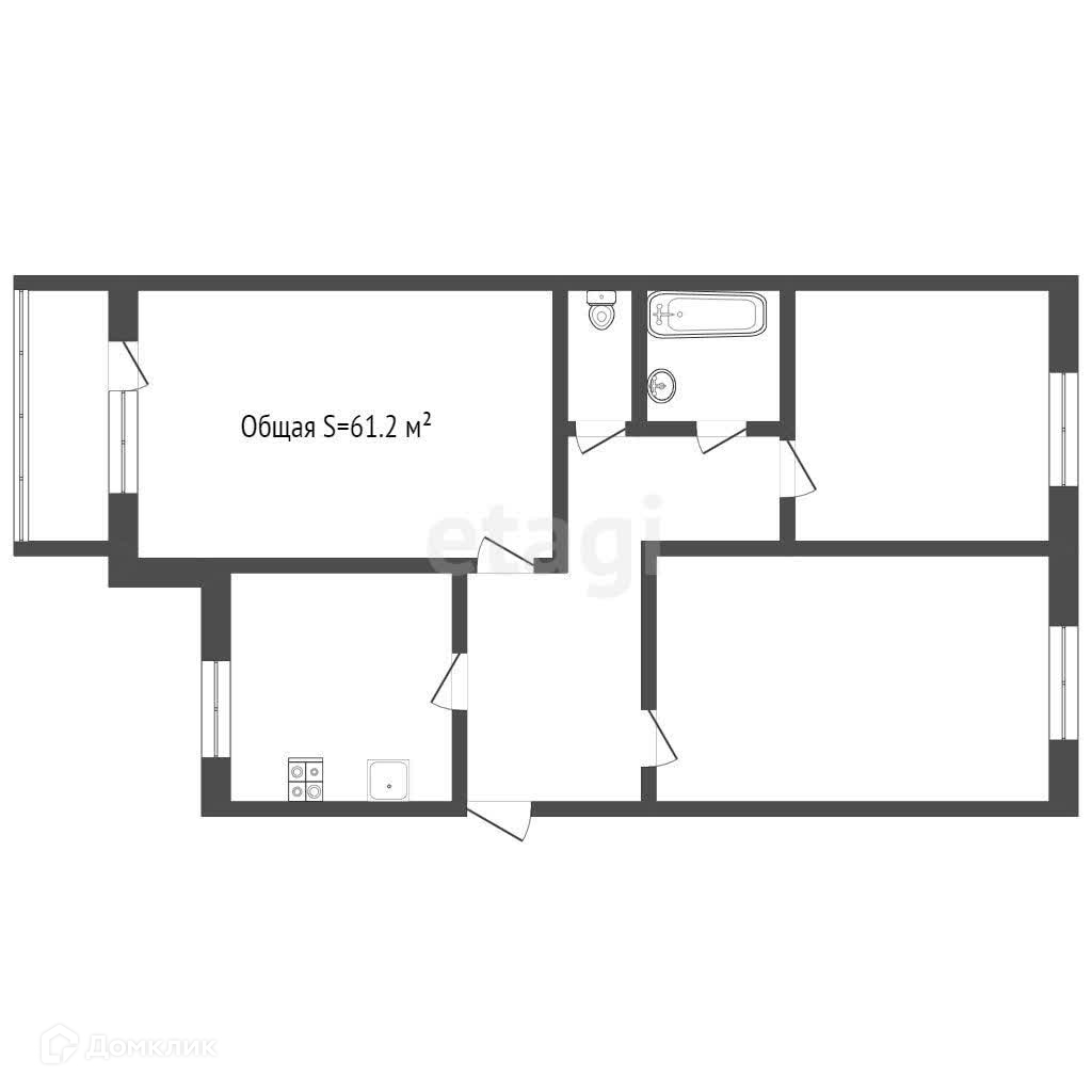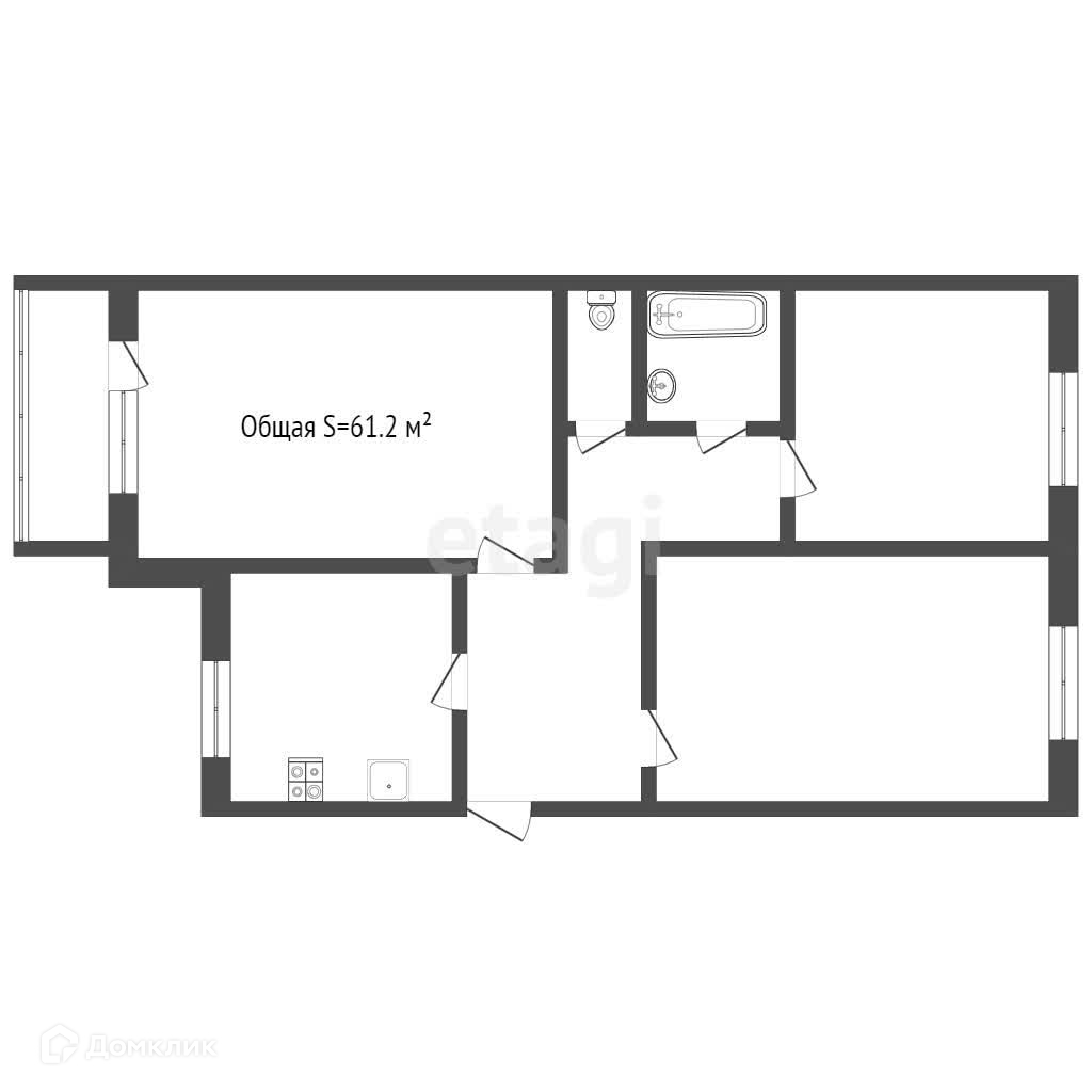Общая площадь 61.2 м2
