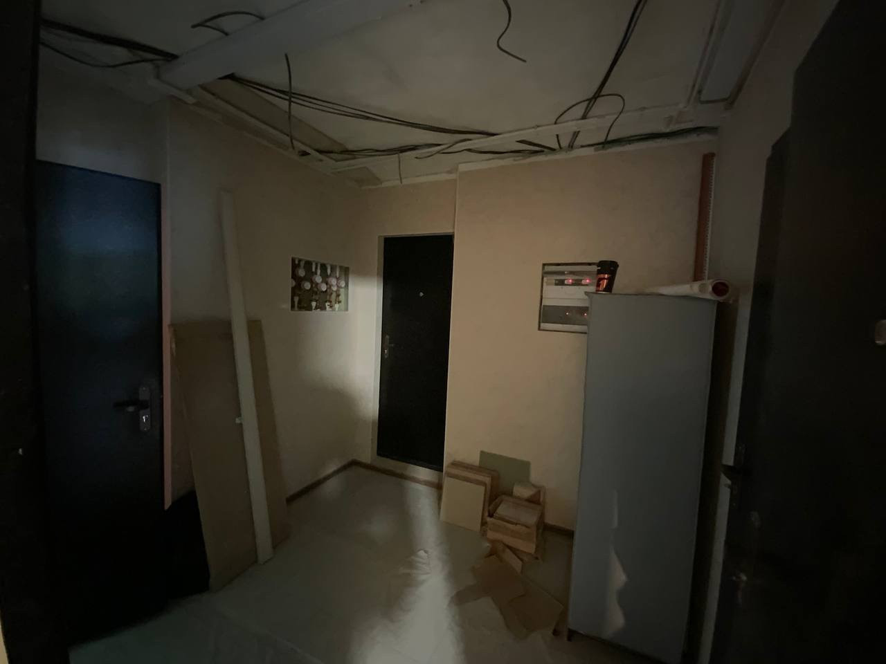 Новые входные металлические двери в холл и в квартиру, новые стены санузла.