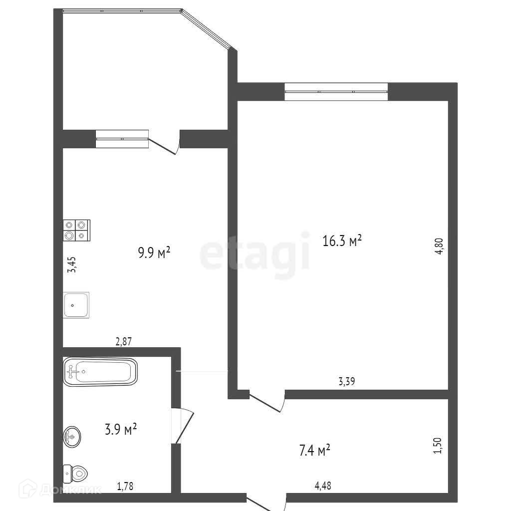 Балкон, лоджия 1 балкон