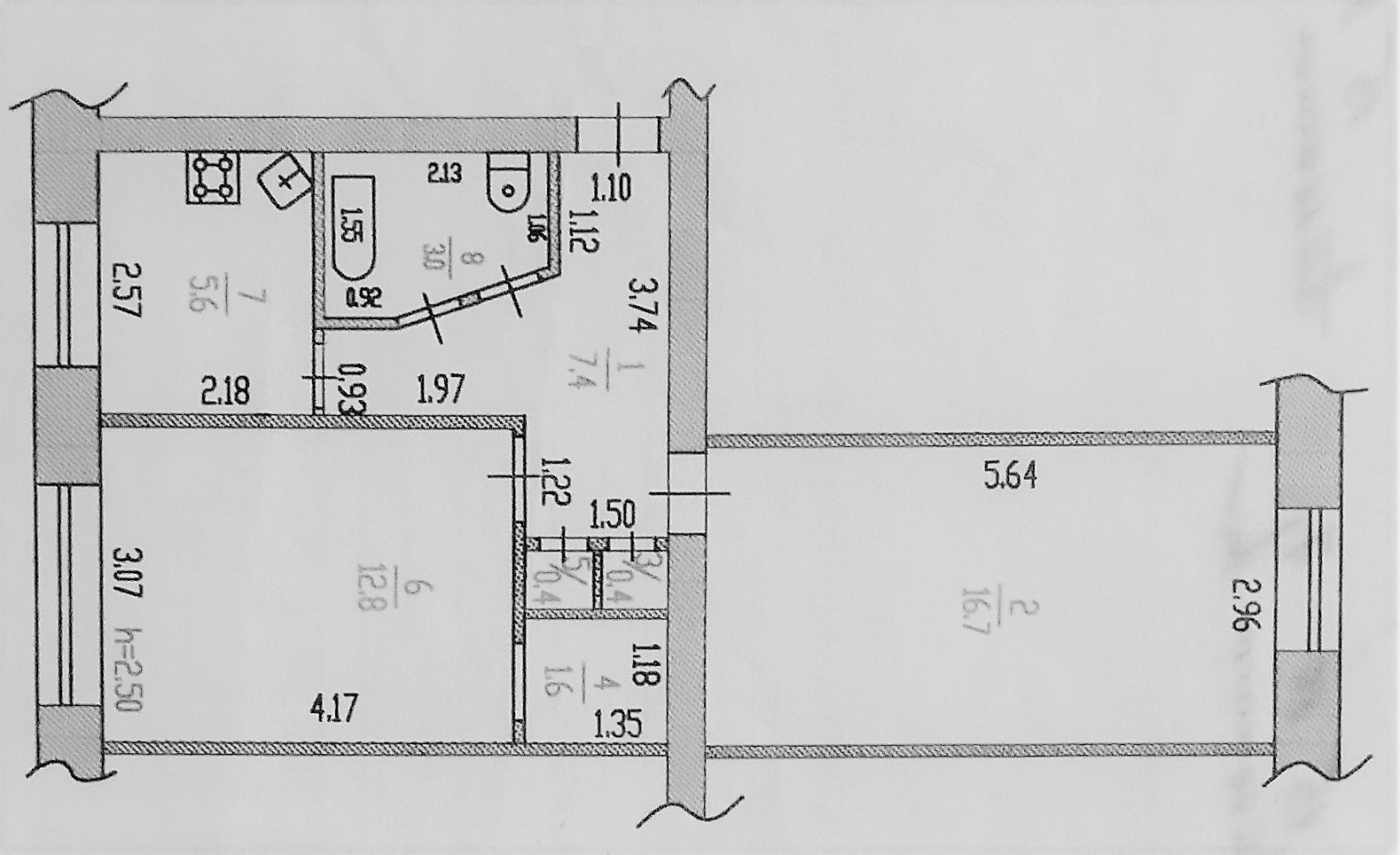 Двухкомнатная квартира в кирпичном доме, 1980 года постройки. Квартира светлая, солнечная, с толстыми стенами. Окна выходят на две стороны. Комнаты изолированные гостиная – 16,7 кв.м., спальня 12, 8 кв. м. Также в комнате поменьше есть кладовая комната, можно сделать гардеробную или увеличить площадь комнаты. В коридоре два встроенных шкафа, которые также можно использовать под гардеробную или поставить вместительный шкаф-купе, все зависит от Ваших желаний. На всех окнах – решетки. Тихий спокойный двор, нет шума от машин.