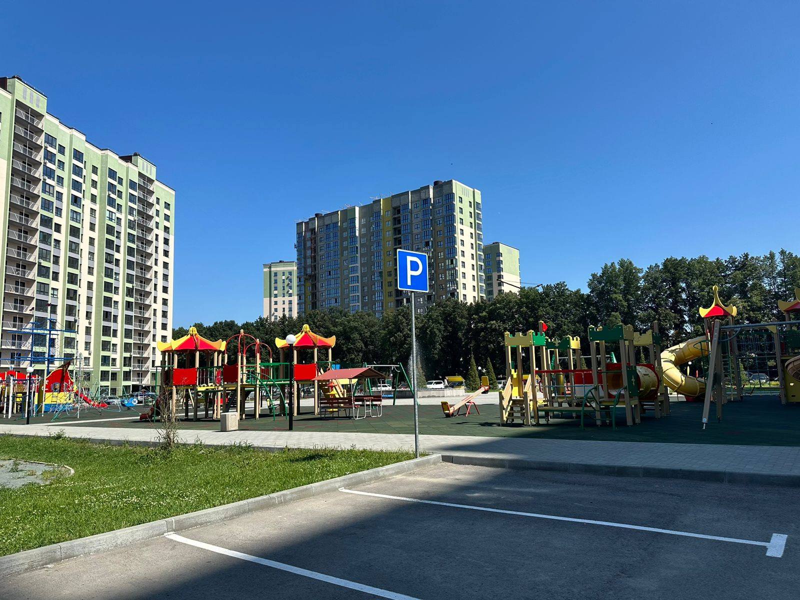 На территории жилого комплекса находятся современные детские площадки, беседки, зоны барбекю и фонтан.