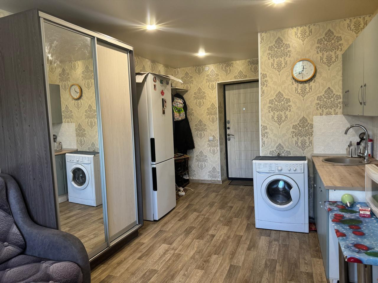 В подарок покупателю оставляем кухонный гарнитур, диван.