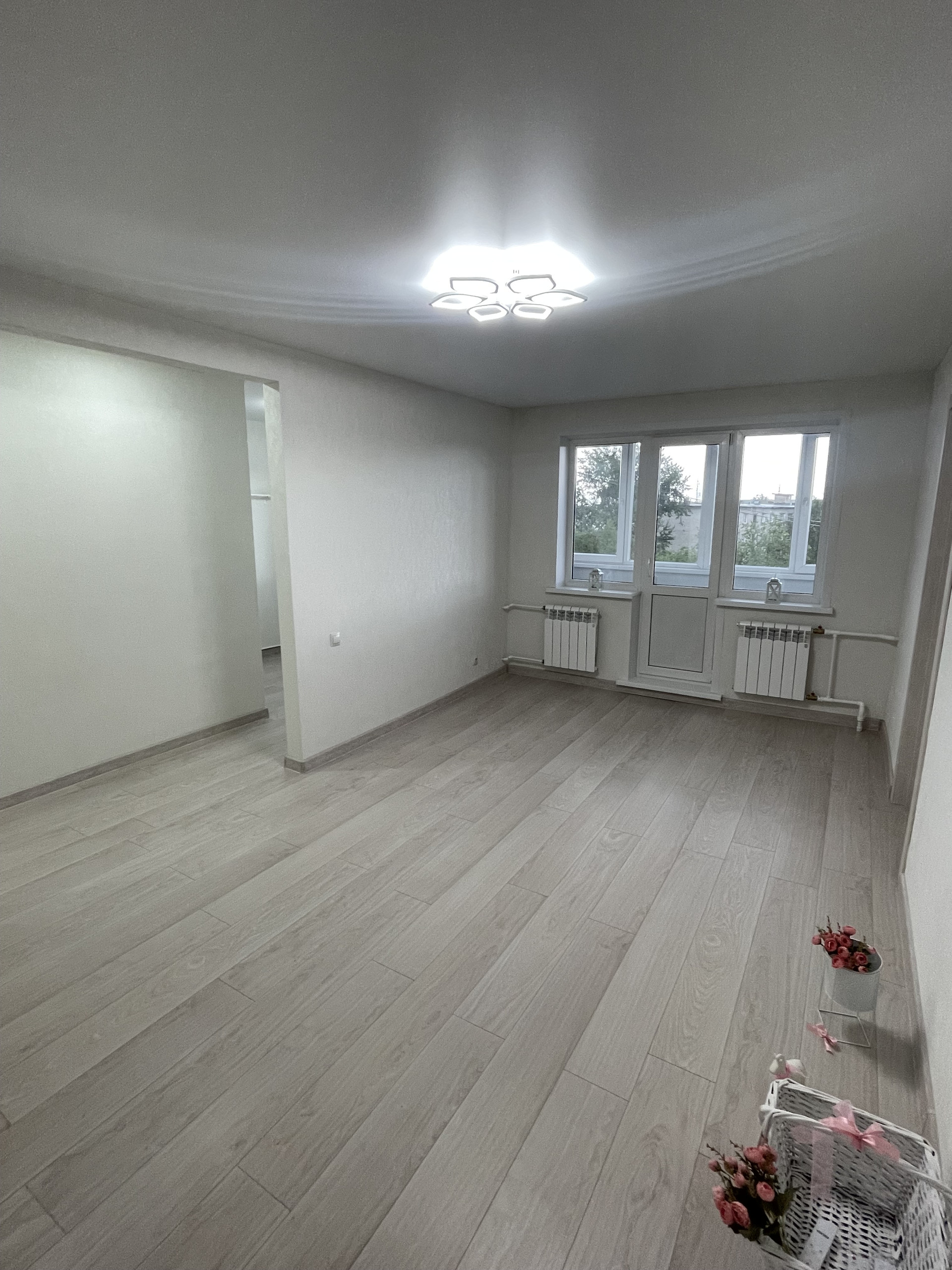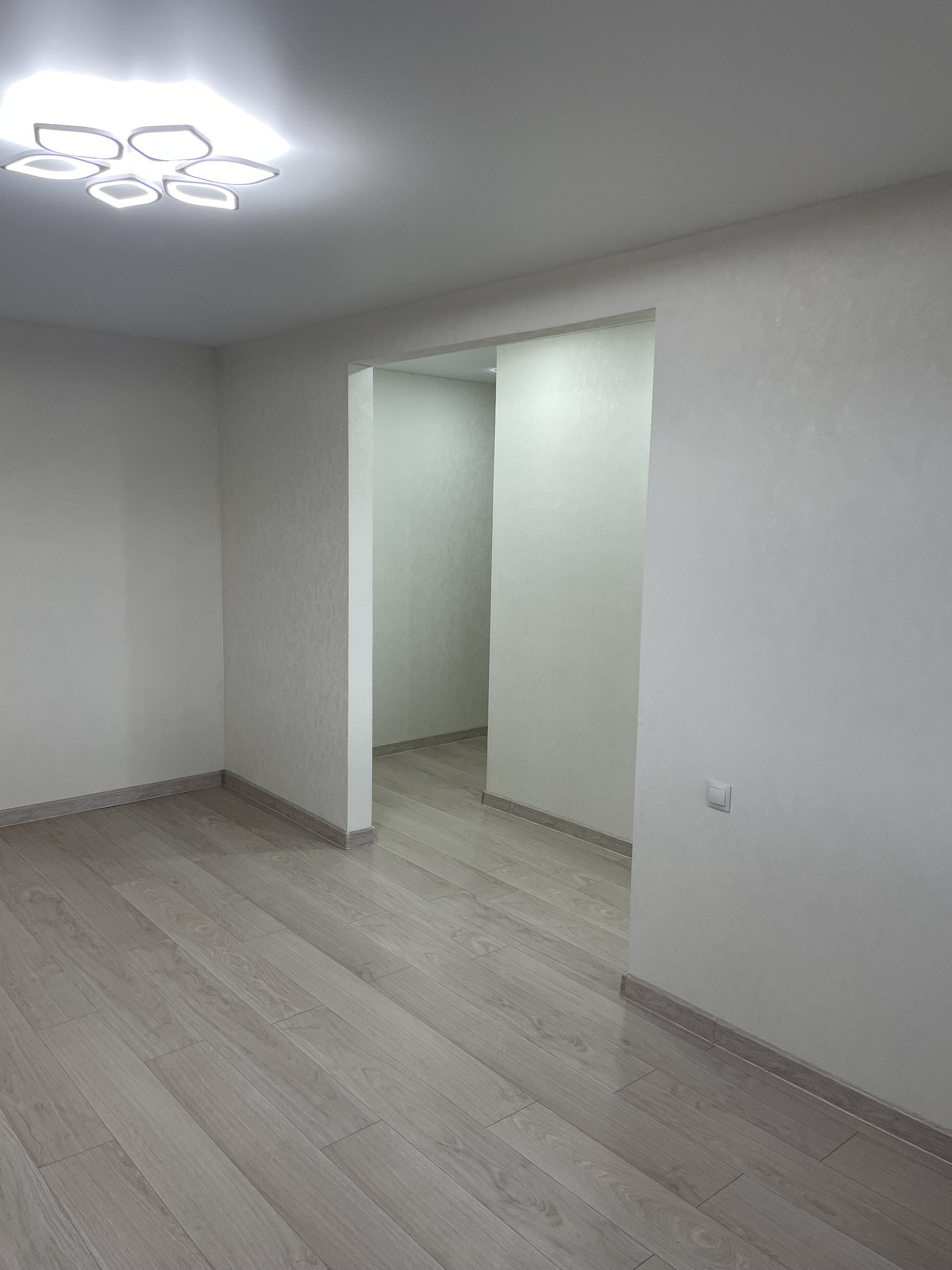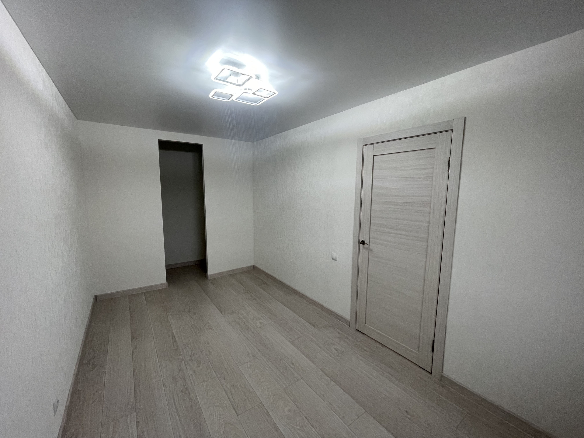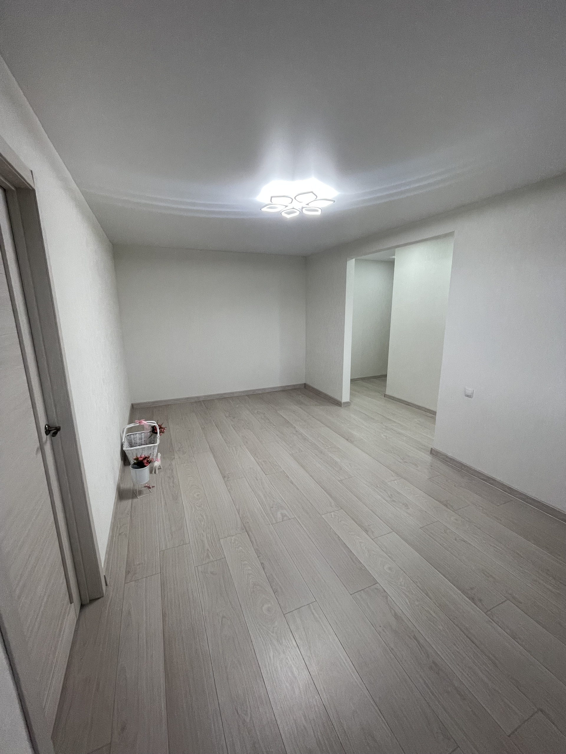 2. стены в квартире выровнены и аккуратно поклеены обои, установлен натяжной потолок;