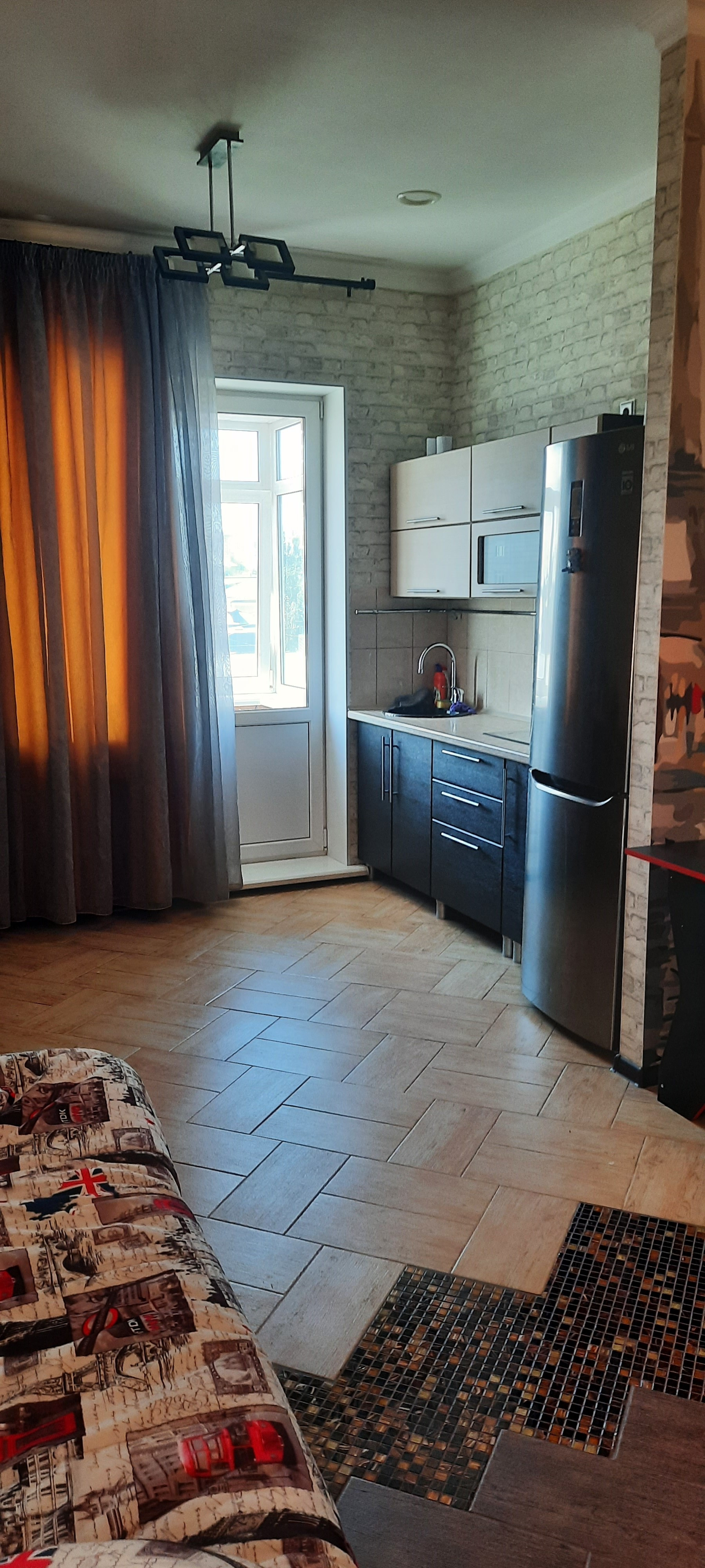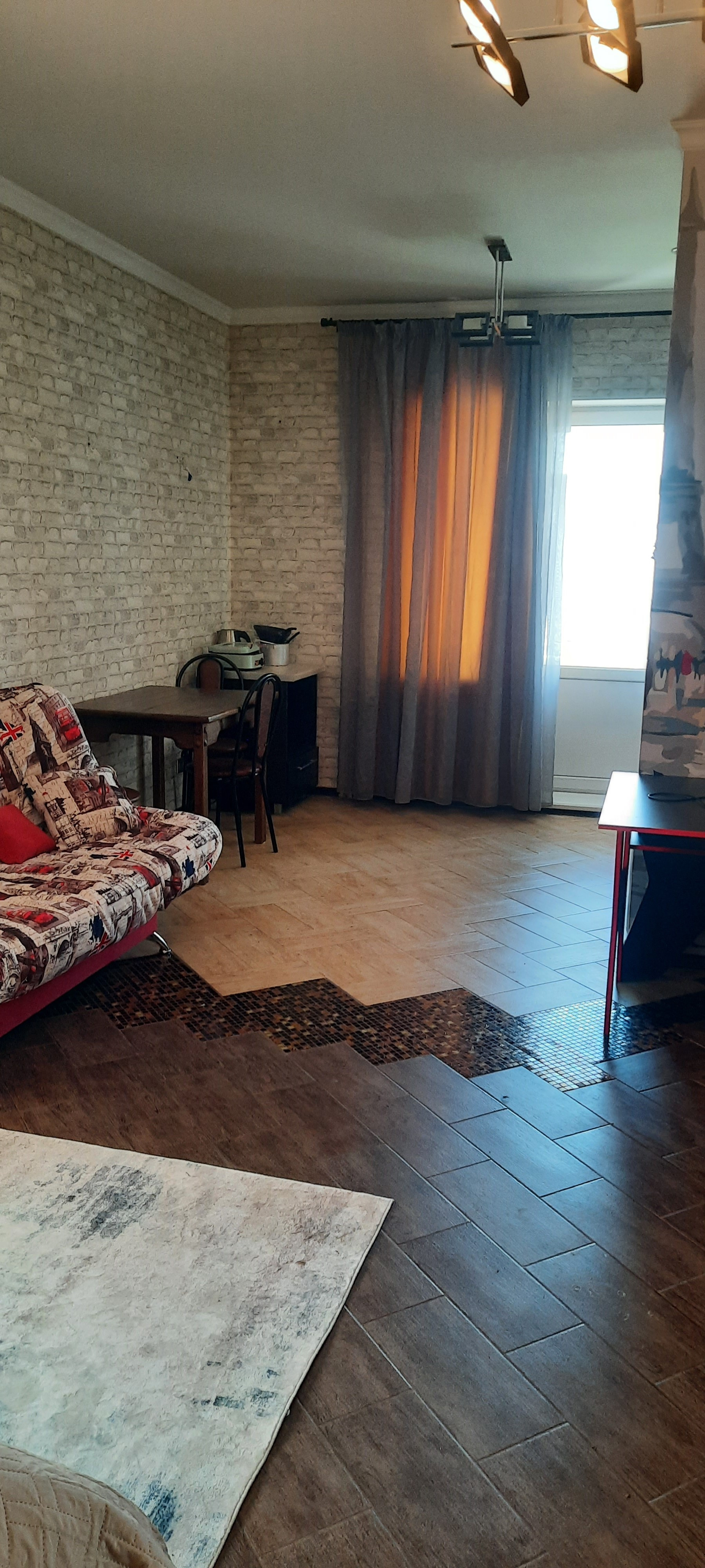 Продается студия в центре  Барнаула по адресу: Комсомольский проспект 28а, общей площадью 37,4  кв.м., на 4 этаже 5-ти этажного кирпичного дома. Дизайнерский ремонт с  зонированием помещения , встроенная кухня, кондиционер, шкаф-купе, балкон застеклен, солнечная сторона! Дом 2007 года постройки на тринадцать квартир ,высота потолков 2,99!Отопление и вода центральные, горячая вода(электрокотел)! Все в шаговой доступности! Заходи и живи !Удобно под сдачу!