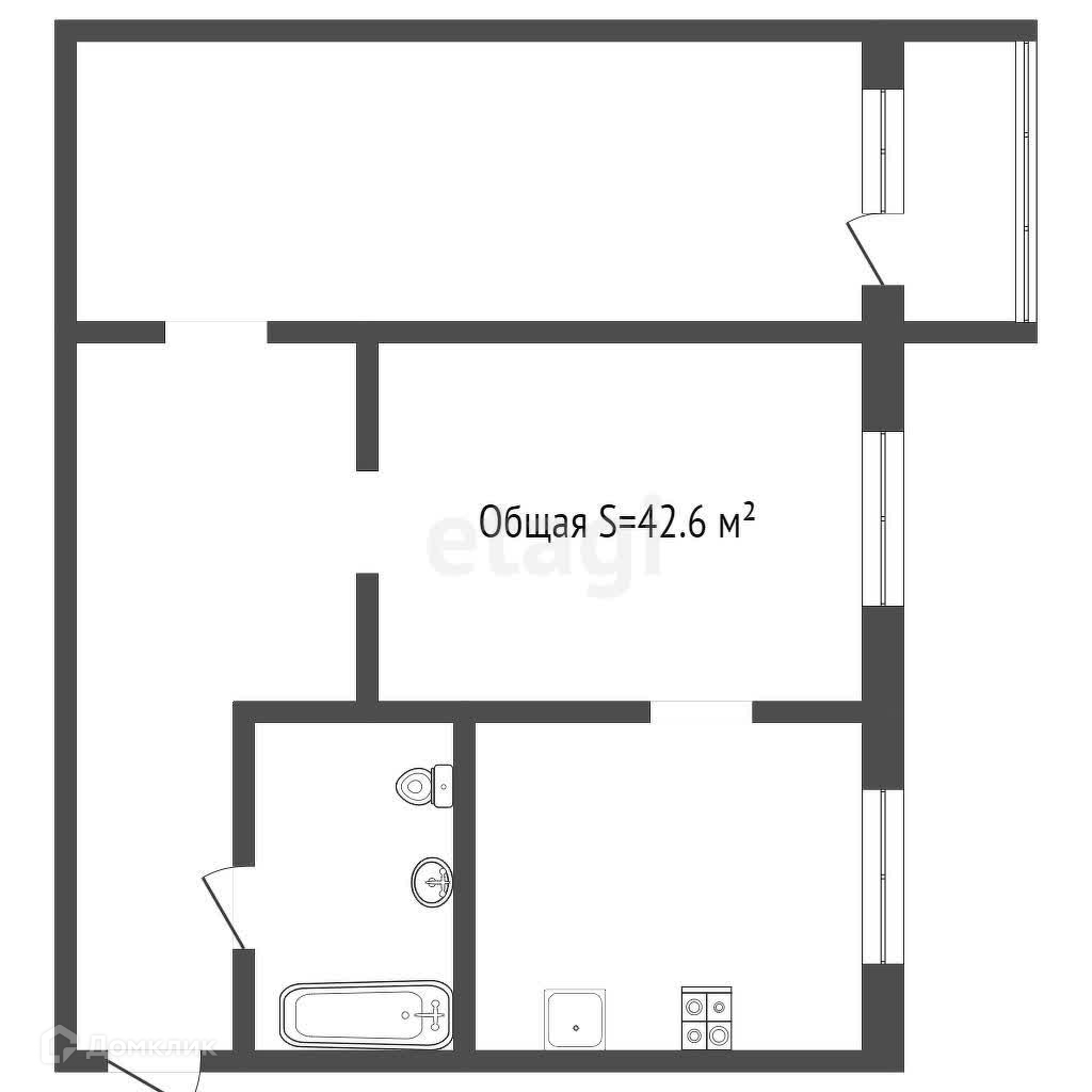Общая площадь 42.6 м2