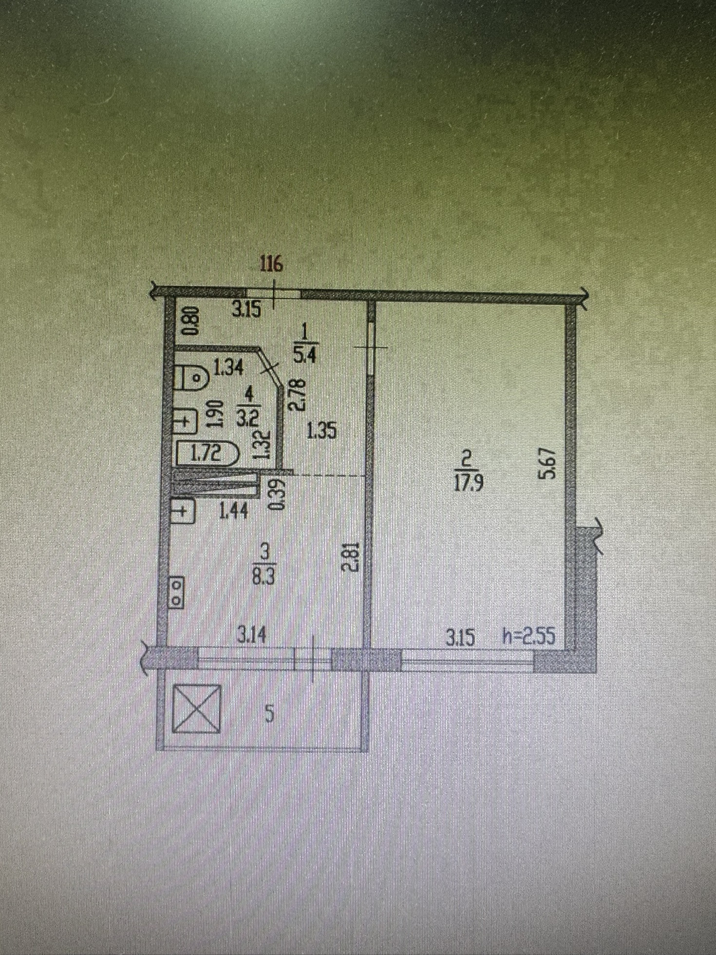 Высота потолков 2.55 м
