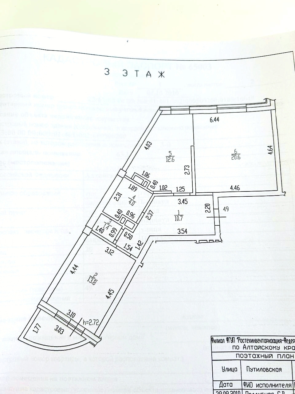2-комнатная квартира, 64 м2, этаж 3 / 13, на продажу в Барнауле, Путиловская улица, 20