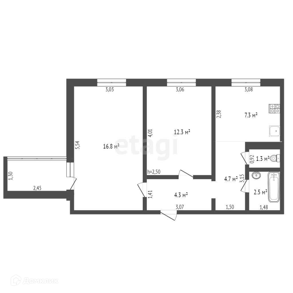 Общая площадь 49.2 м2