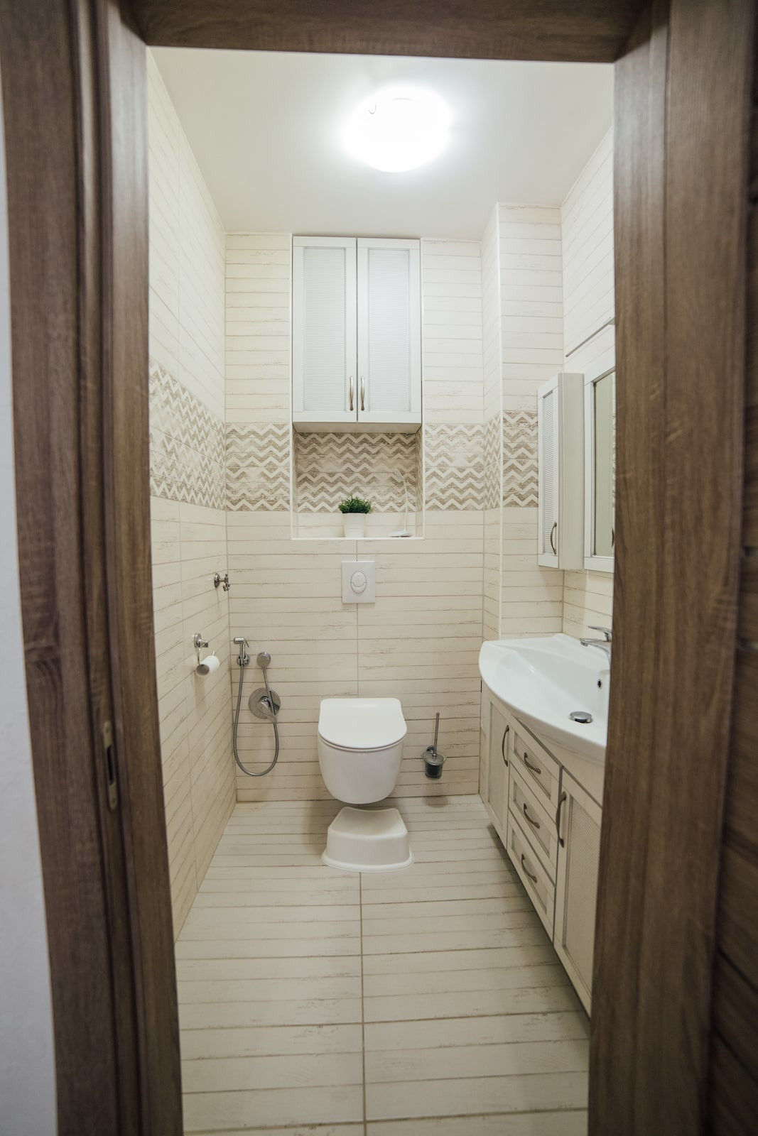 В туалете установлена качественная немецкая инсталляция Grohe, а также гигиенический душ и большая раковина.