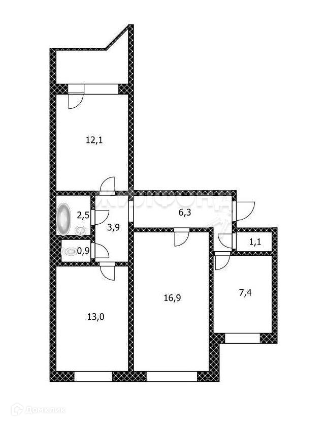 Общая площадь 64.1 м2