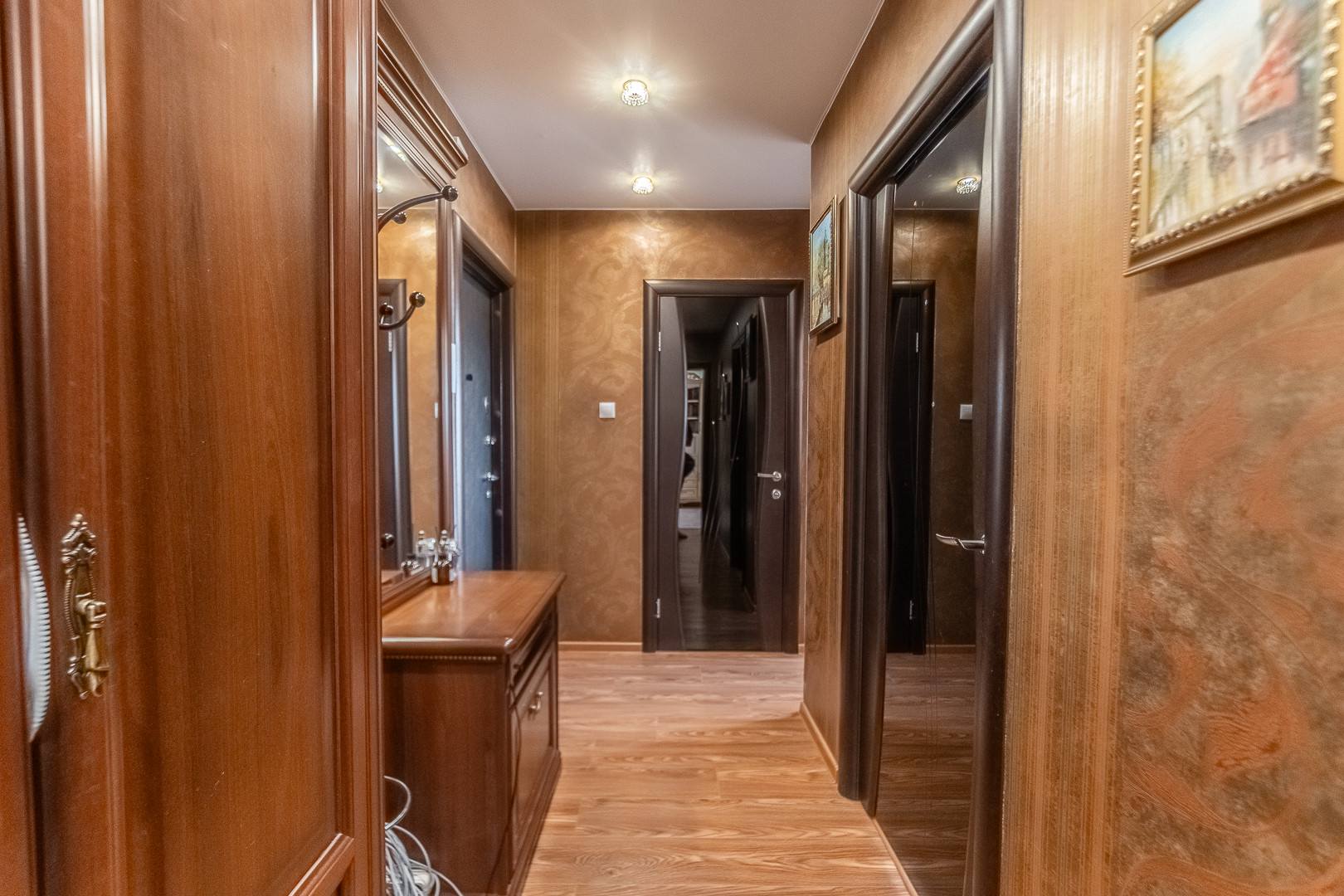 В квартире выполнен капитальный ремонт: на полу залита стяжка, качественный ламинат, стены и углы выровнены, установлены хорошие межкомнатные двери. Полностью заменена электропроводка, сантехнические трубы, новые радиаторы, пластиковые окна. В ванной комнате дорогая сантехника, кафель.