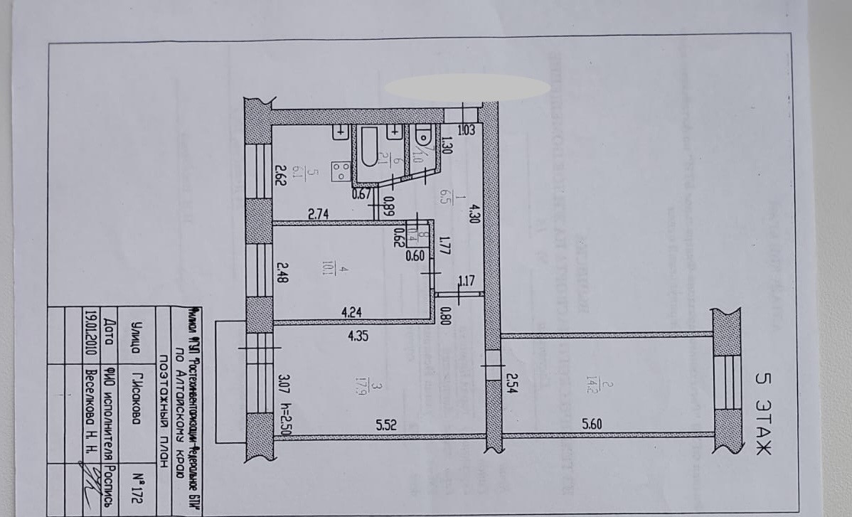 3-комнатная квартира, 58.3 м2, этаж 5 / 5, на продажу в Барнауле, улица Георгия Исакова, 172