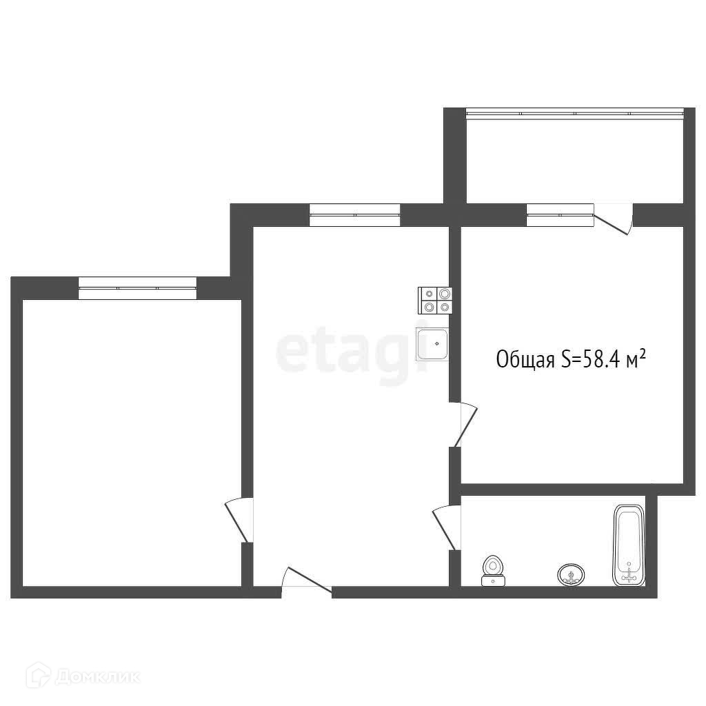— Площaдь квapтиры пo EГPН: 58.4 м² + лоджия 6 м²