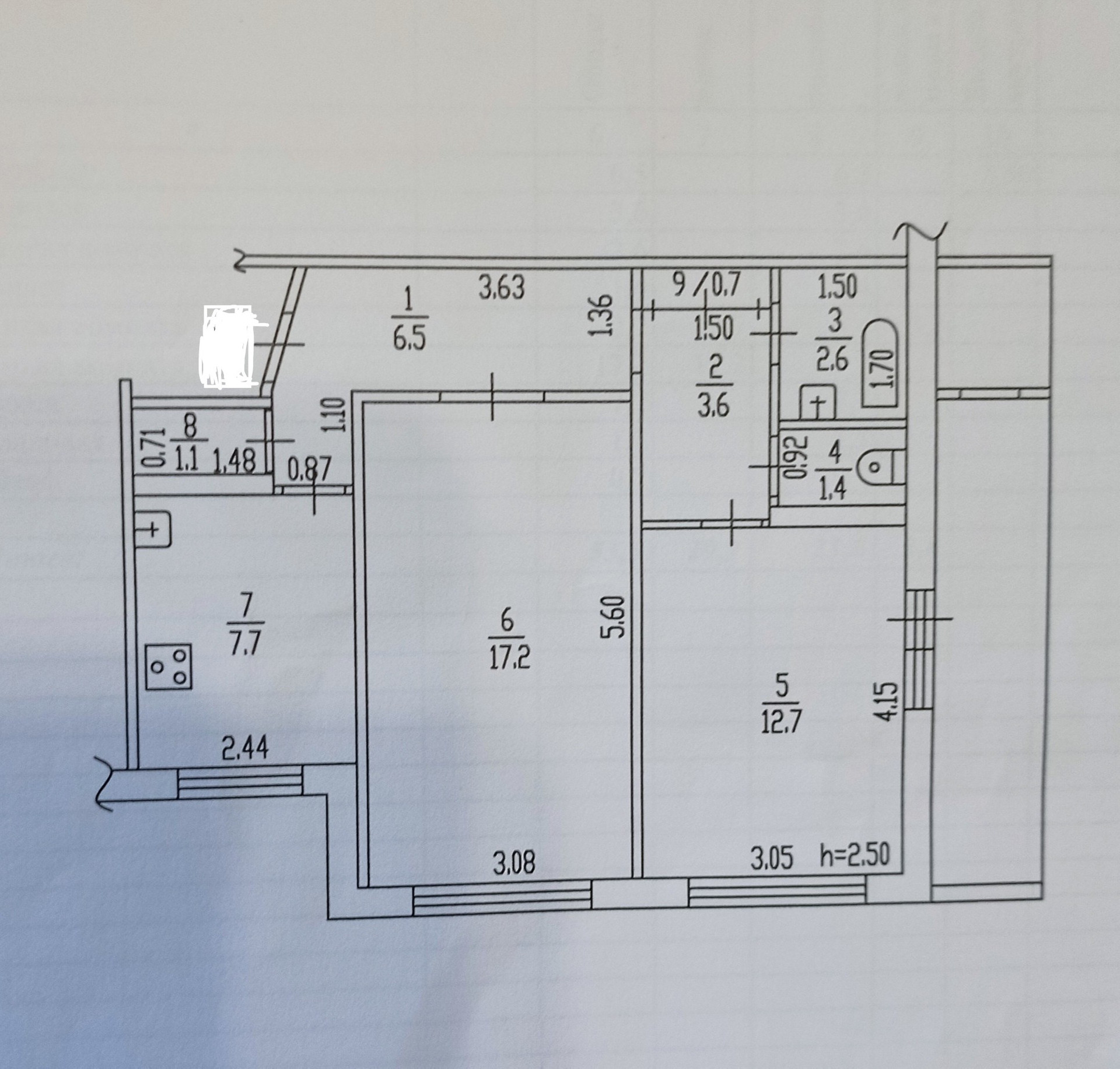 Площадь кухни 7.7 м2