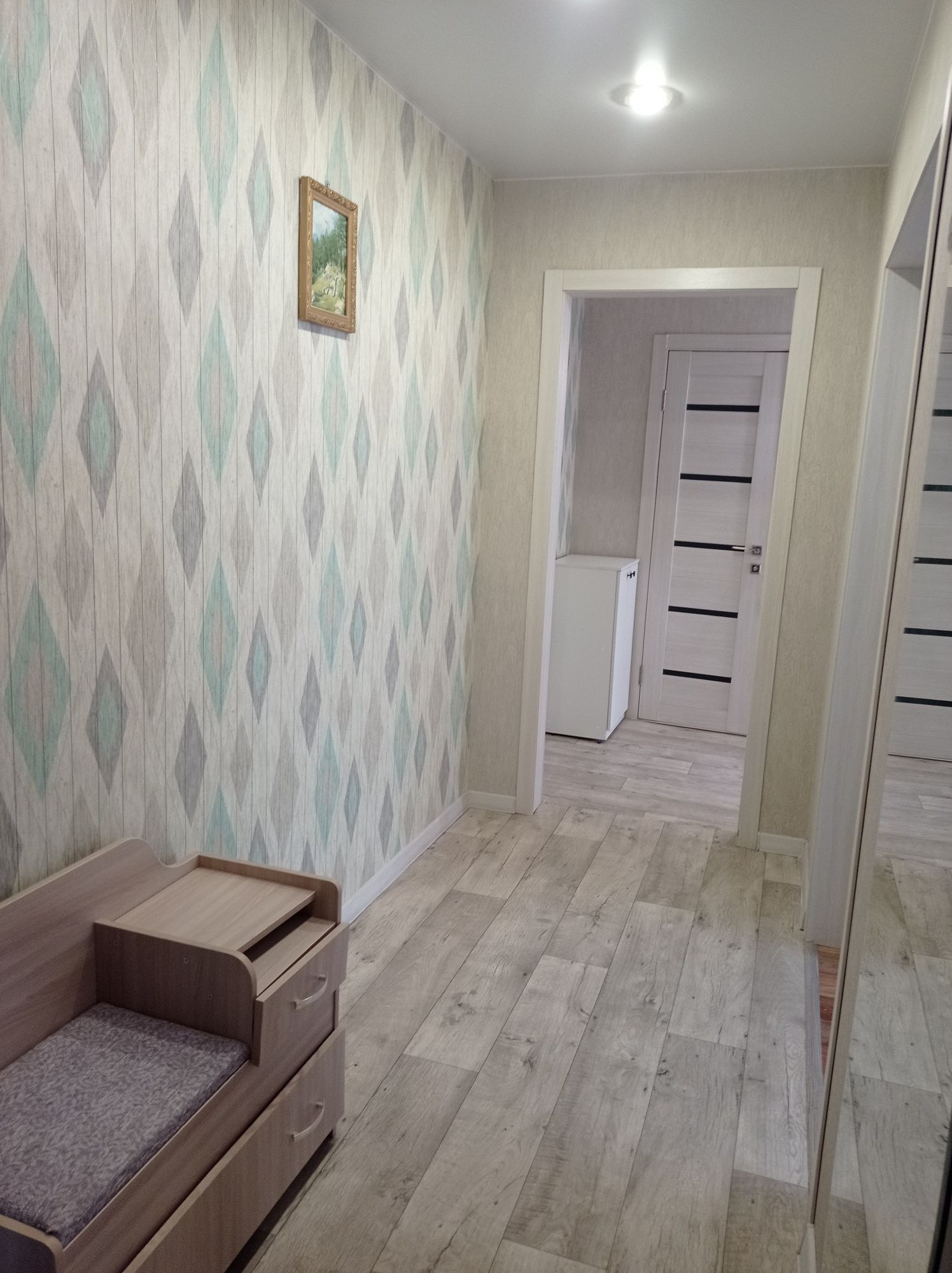 Срочная продажа,себе вариант найден.Продам теплую уютную 2-ком. квартиру на 4 этаже 9 этажного дома. Квартира в отличном состоянии. Окна пластиковые,во всех комнатах и коридоре натяжные потолки,постелен качественный линолеум, выровнены стены. На кухне установлен новый кухонный гарнитур который останется в подарок новым собственникам. Так же останется вытяжка, кондиционер и водонагреватель. В ванной отделка кафелем, в с/у панели ПВХ. Большая лоджия с сушилкой остеклена, ее площадь составляет 7.6 метров квадратных и не учитывается в площадь квартиры. Тамбур на две квартиры. В данный момент ведётся благоустройство дворовой территории, уложен асфальт, далее обустройство детской площадки и ремонт в подъездах. Вся инфраструктура в шаговой доступности.Один взрослый собственник,обременений и долгов нет. Приглашаем на просмотр.