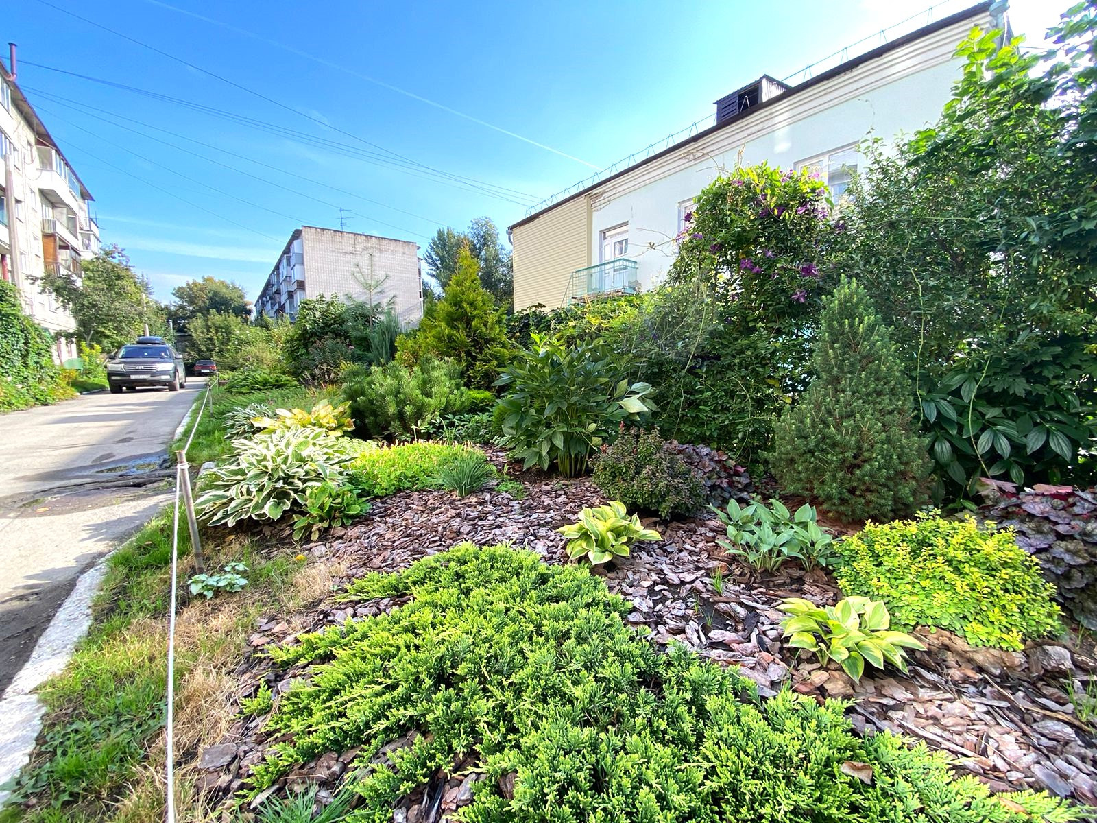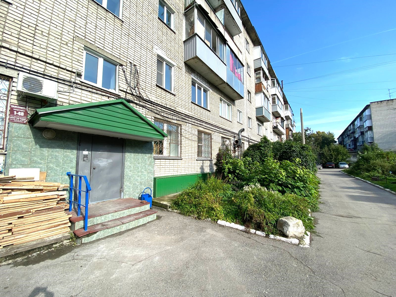 Подъезд чистый, двор ухожен и облагорожен зелеными насаждениями.