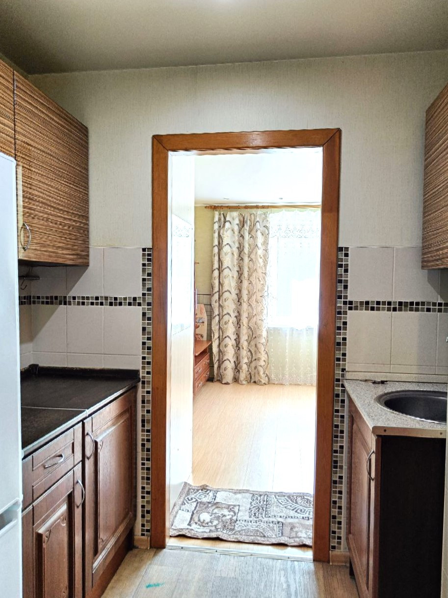 Квартира с косметическим ремонтом, что позволит новым владельцам сразу заселиться: пол стяжка покрыт линолеумом, ровные стены под обоями, санузел в кафеле, на кухонной зоне выложен фартук в зоне готовки и мокрой точки, трехстворчатое пластиковое окно благодаря чему внутри всегда будет достаточно света, надежная входная дверь. Для удобства отделена зона кухни от комнаты.