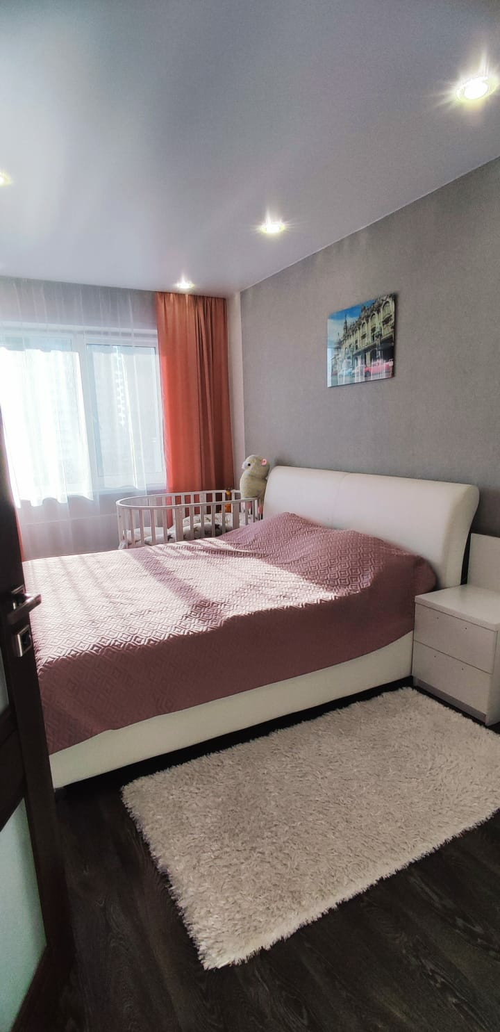 В спальне сделана полная шумоизоляция (стены),остаётся огромный вместительный шкаф - купе.