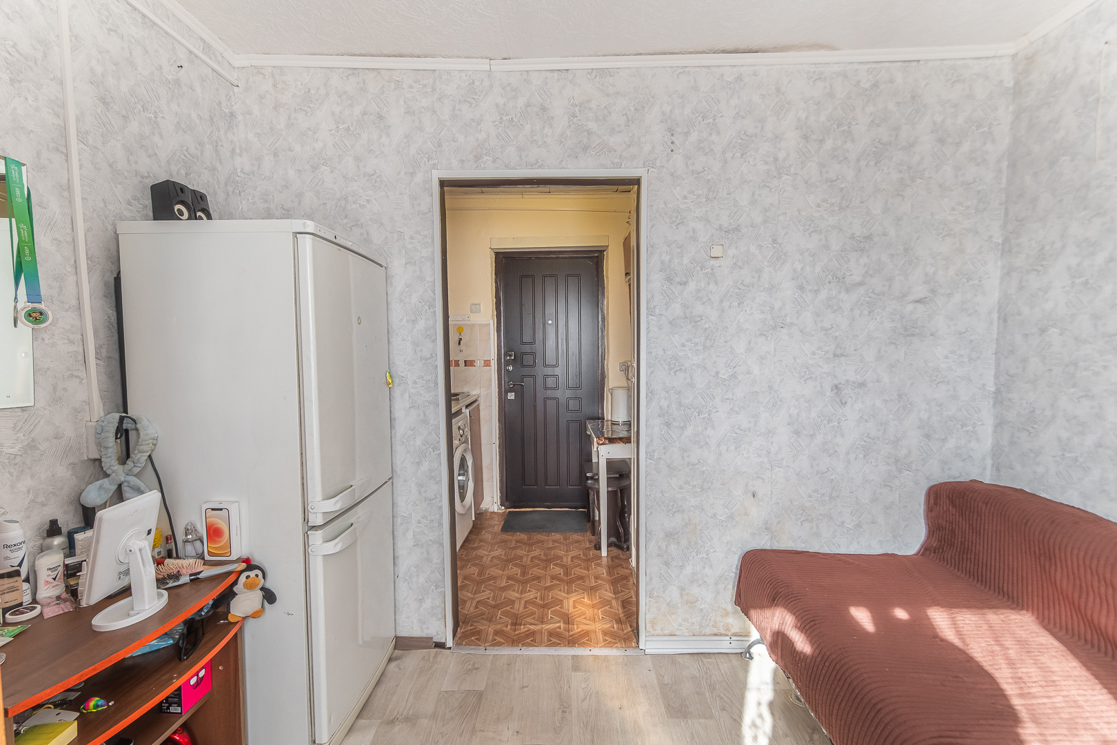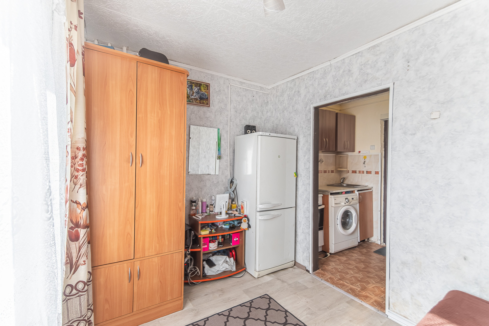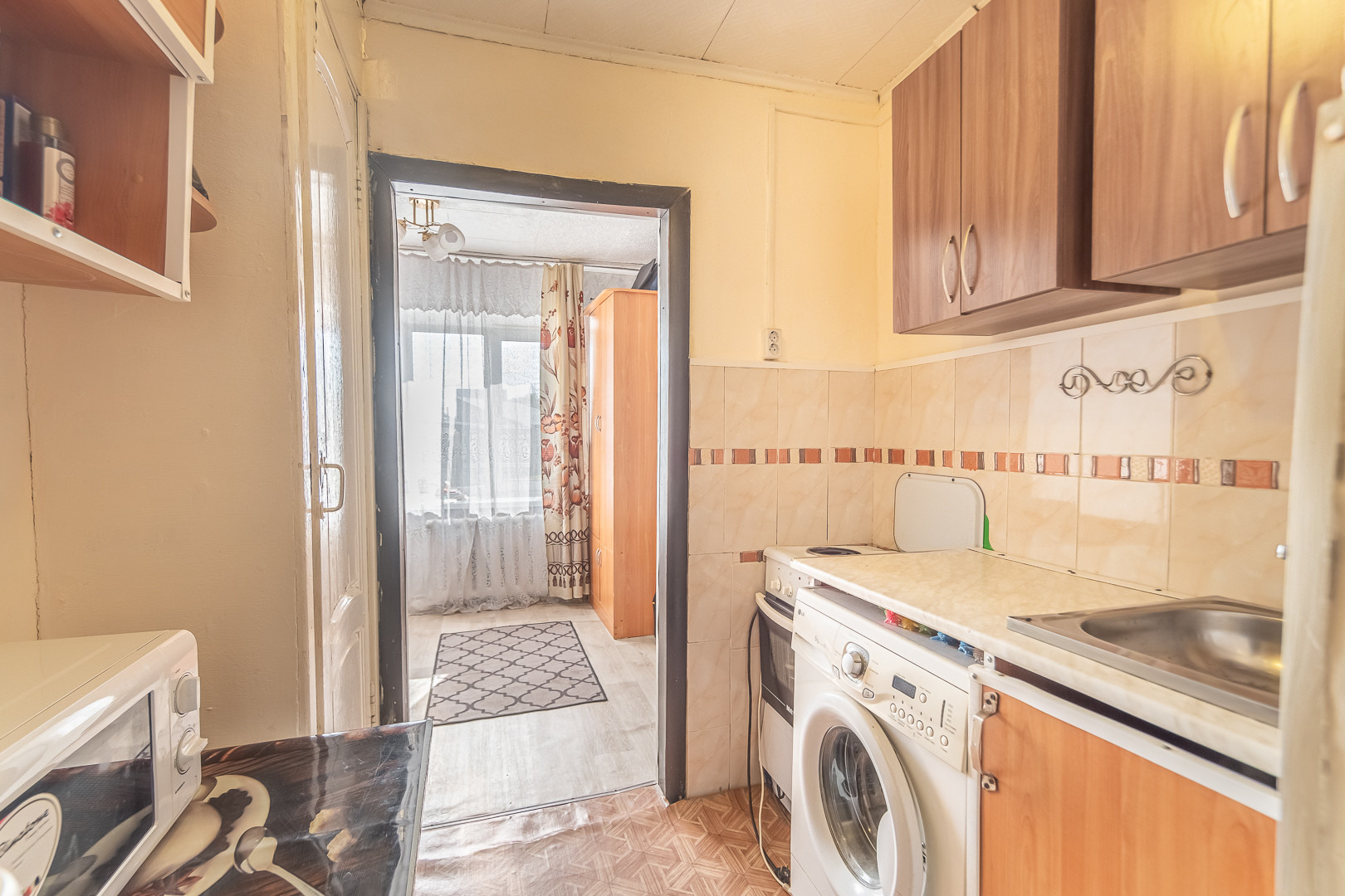 Оставляем кухонный гарнитур, электроплиту, холодильник, стиральную машину, шкаф, диван (заходи и живи)