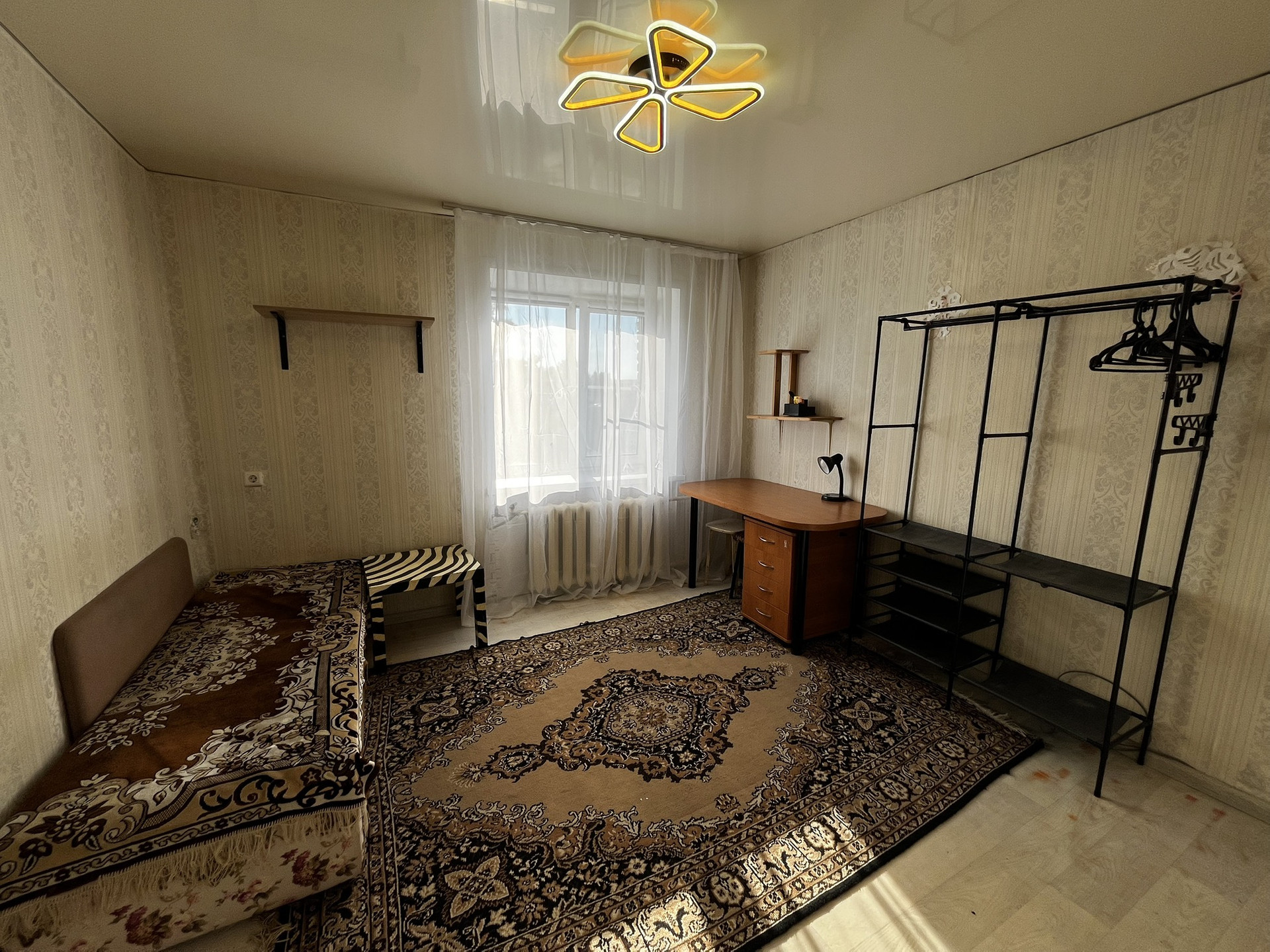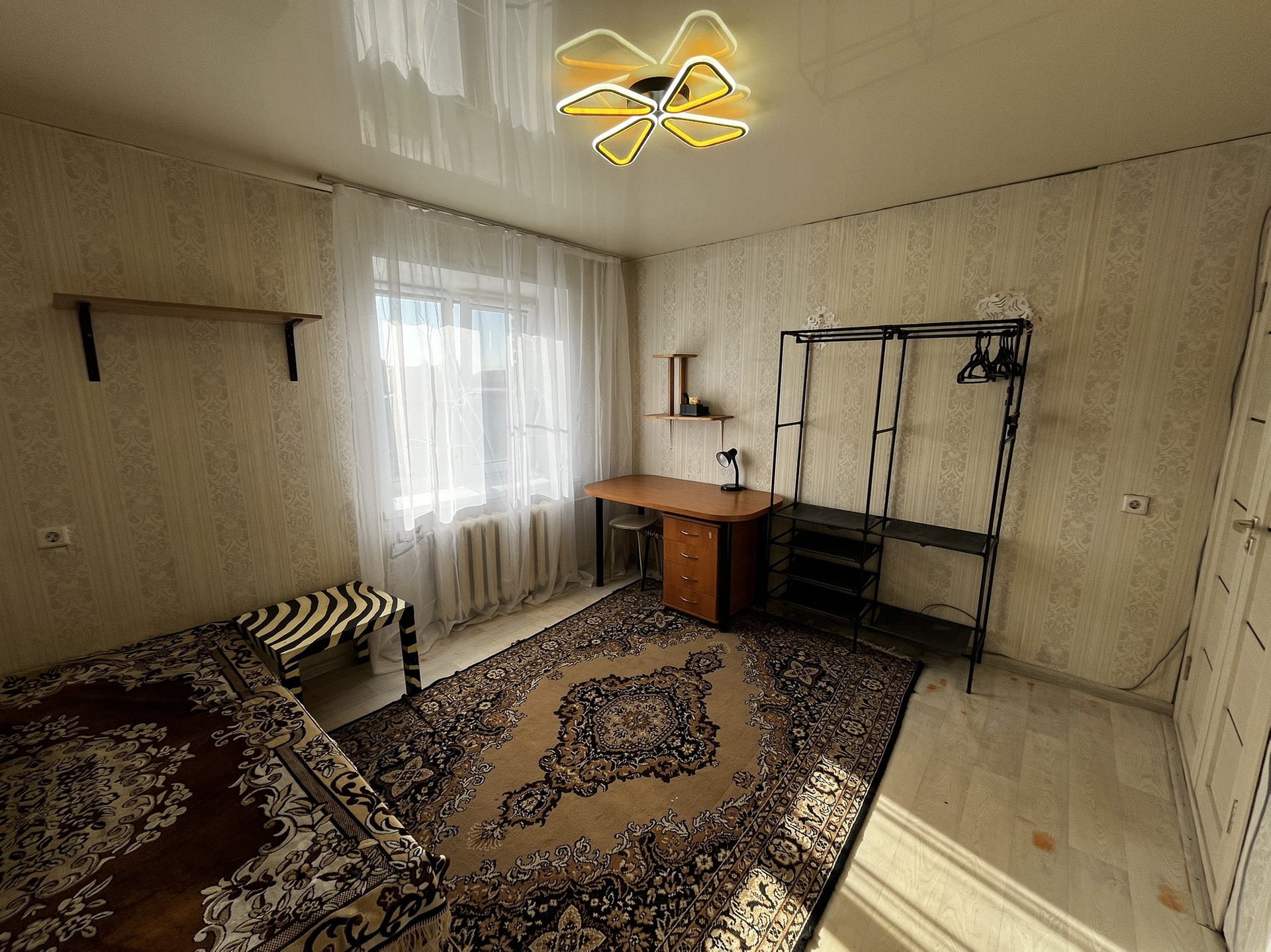 - на полу линолеум, натяжной потолок