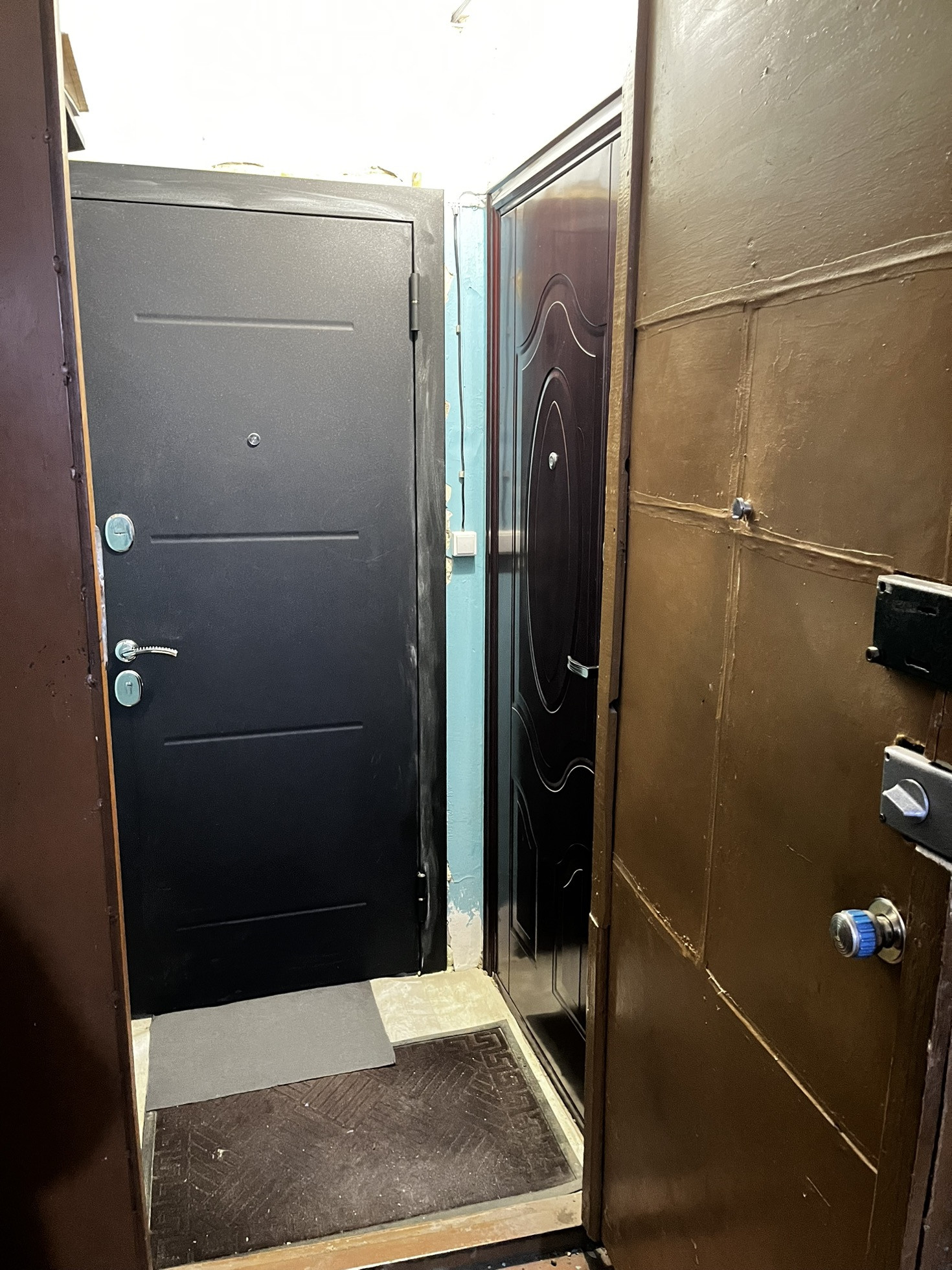 Есть тамбур на две квартиры, дверь закрывается на ключ.