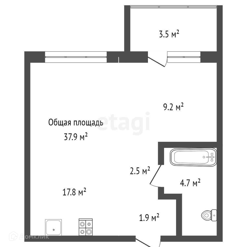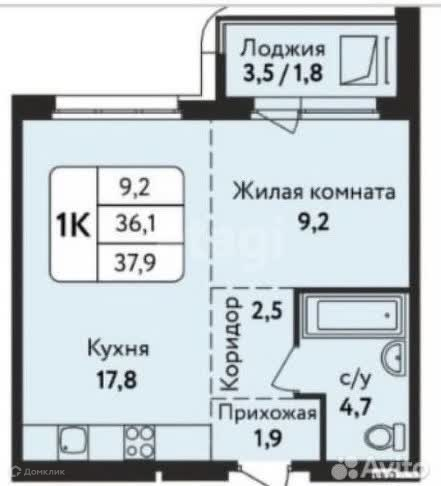 Общая площадь 37.9 м2