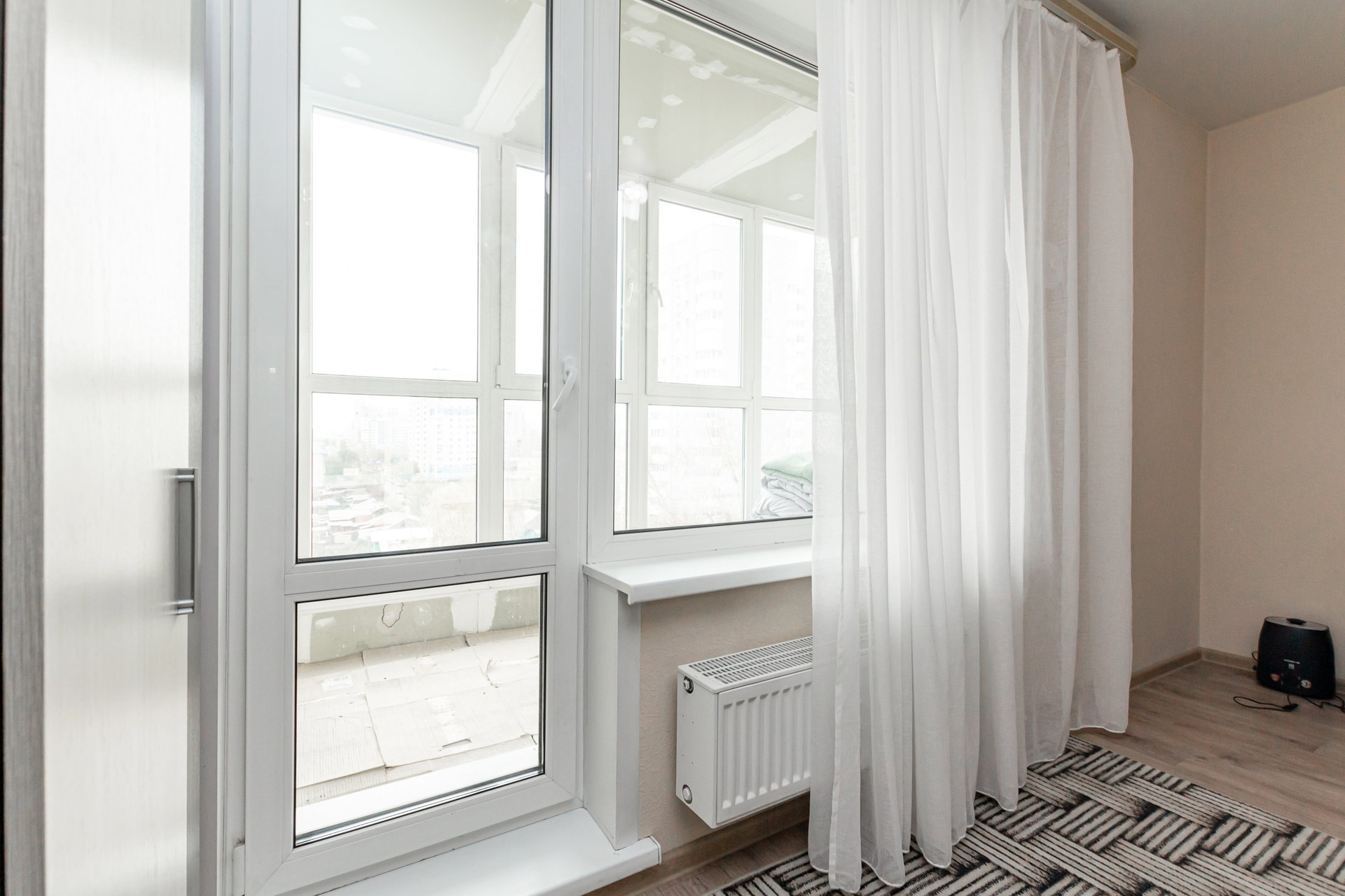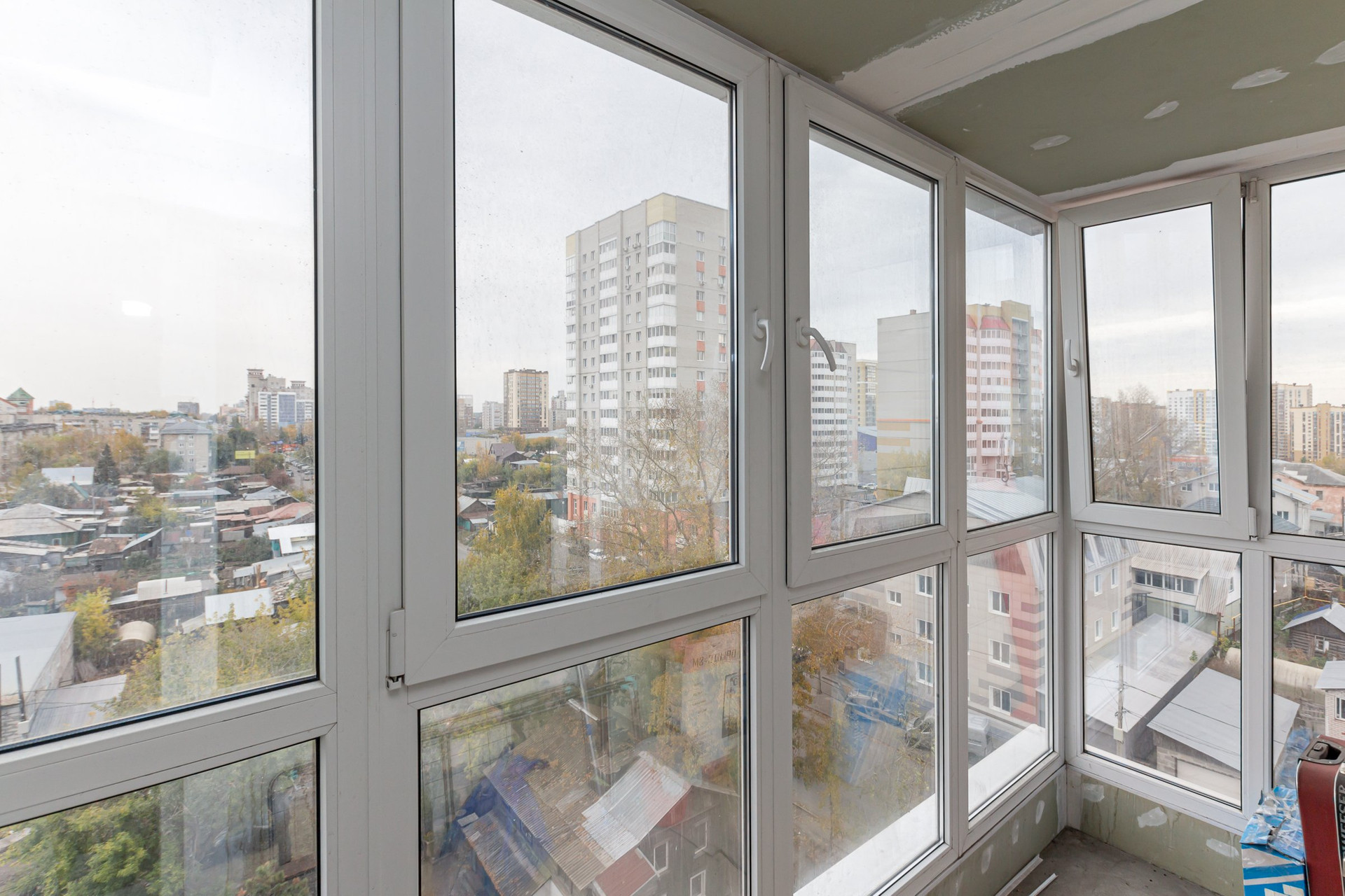 Балконы в квартирах оборудованы архитектурным витражным остеклением, окна застеклены двухкамерными стеклопакетами.