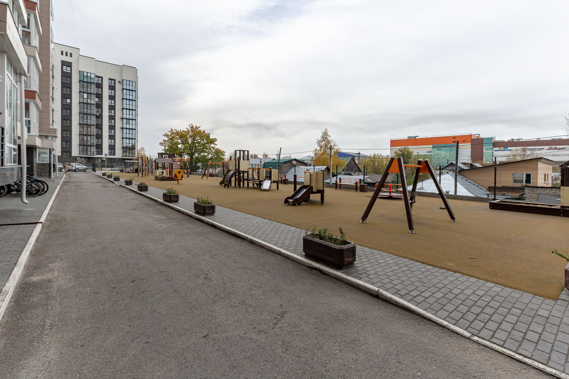 -современное благоустройство придомовой территории закрытого типа.