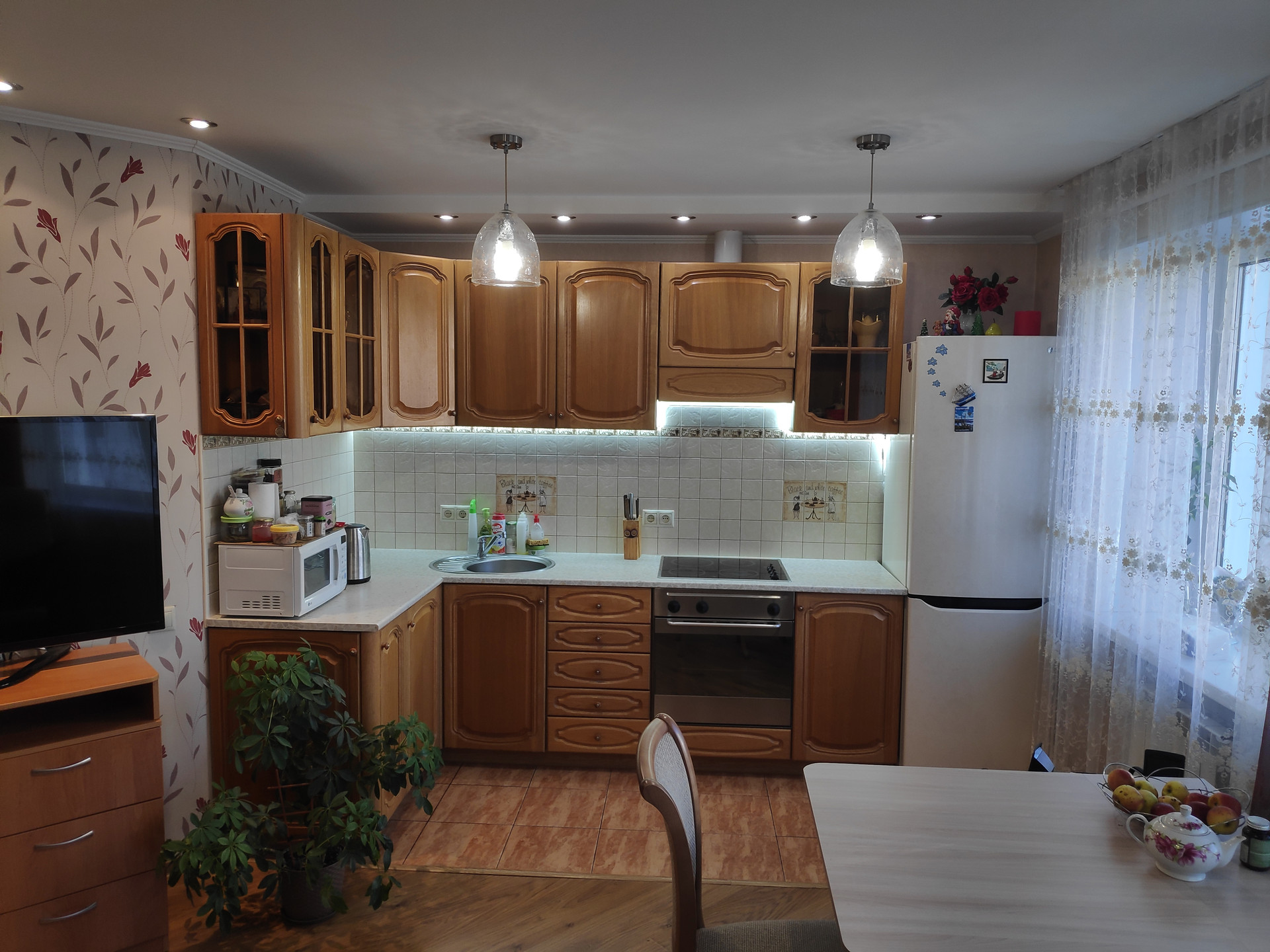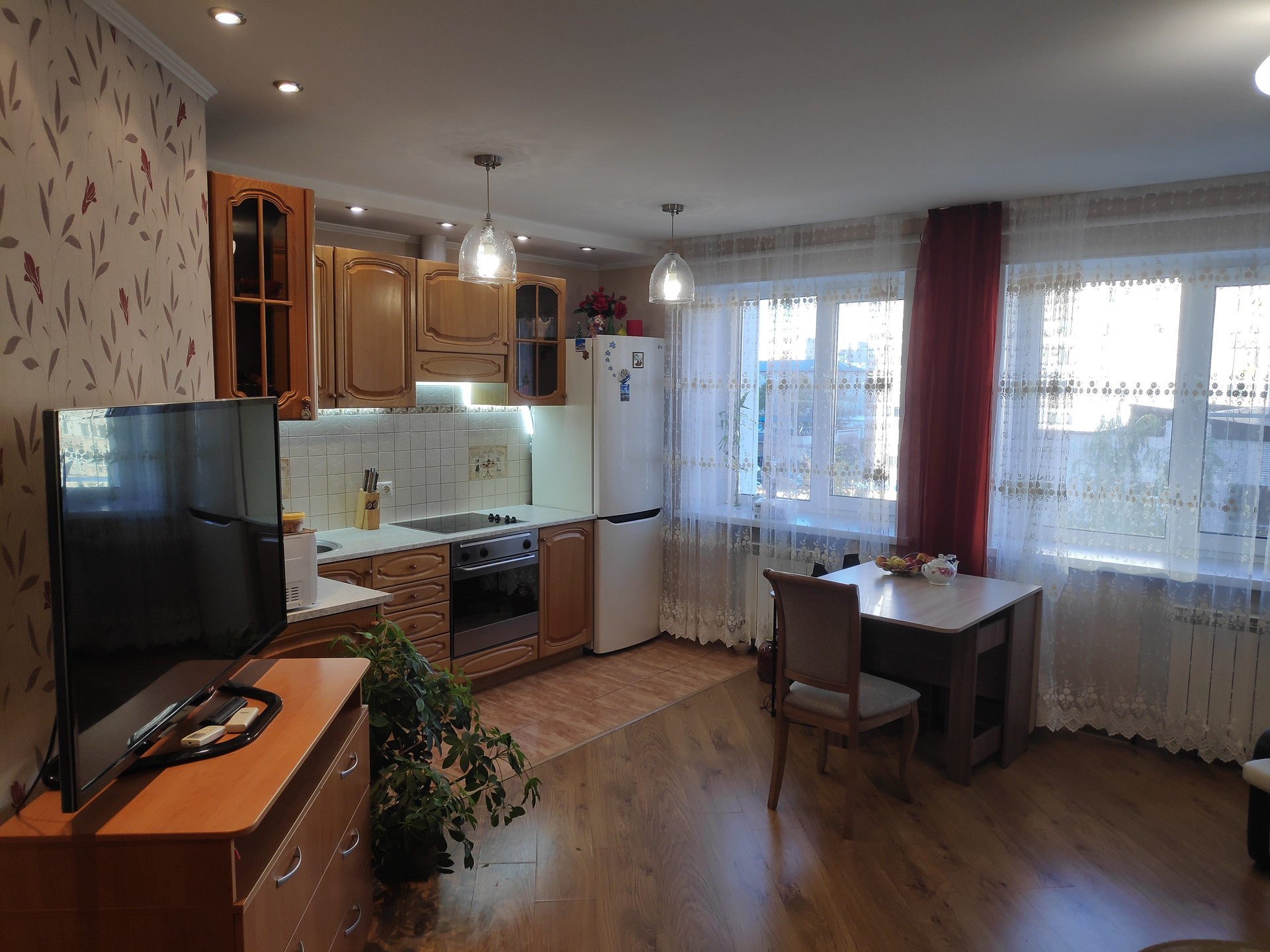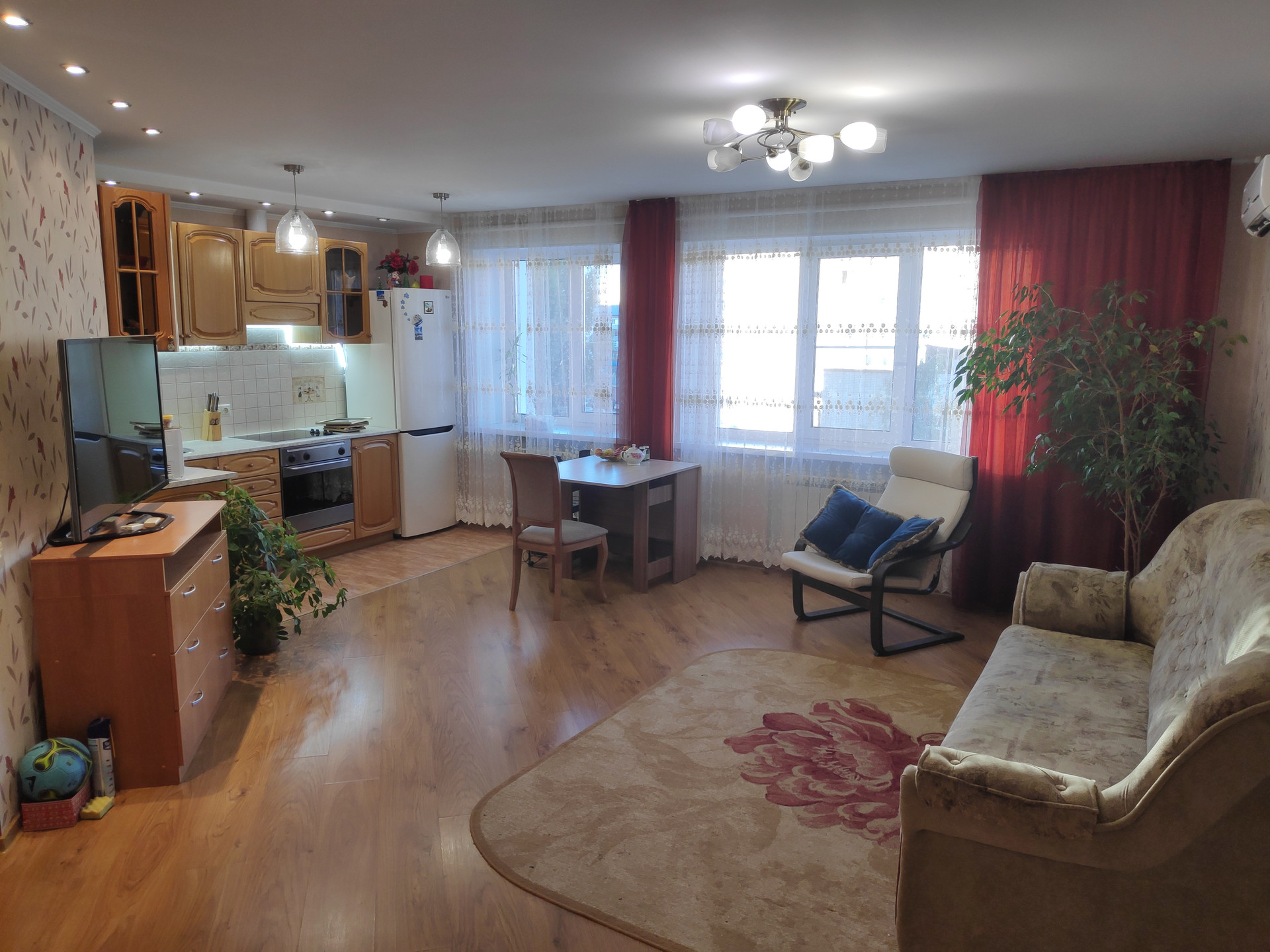 В квартире евроремонт. Два сан.узла, ламинат, новый кухонный гарнитур с бытовой техникой, корпусная мебель отличного качества, межкомнатные двери. Теплая лоджия застеклена. Квартира светлая, просторная,теплая, радостная. Жить в ней - одно удовольствие! ВУЗы, супермаркеты, магазины и магазинчики, кафе, аптеки, остановки общественного транспорта, - всё в шаговой доступности.