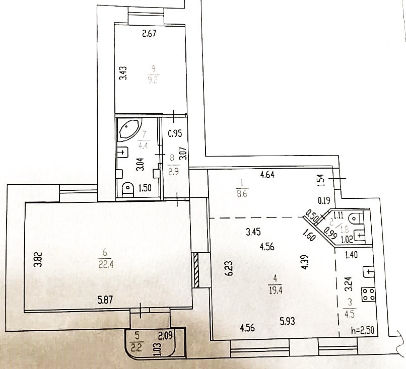 Высота потолков 2.7 м