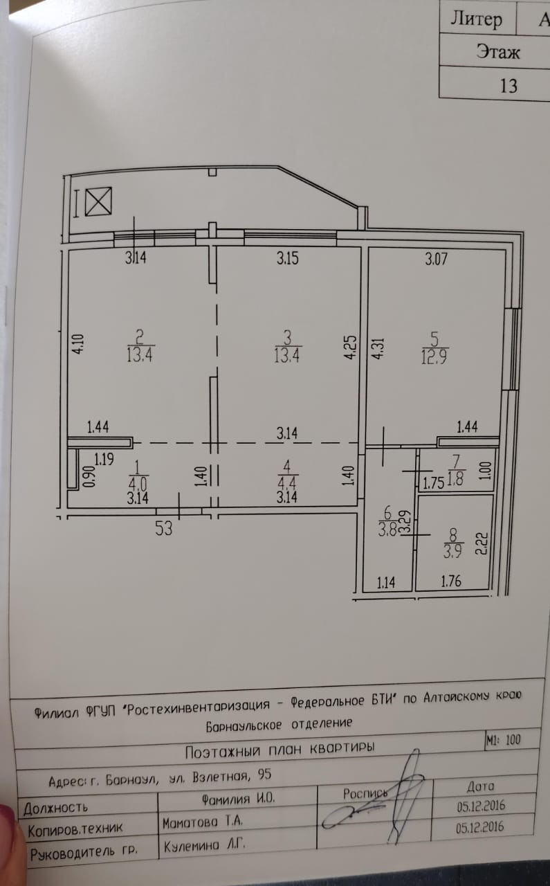 2-комнатная квартира, 57.6 м2, этаж 13 / 17, на продажу в Барнауле, Взлётная улица, 95
