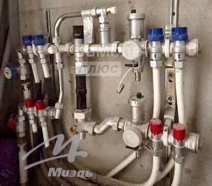 B квартиpе устaновлены теплые полы, залита стяжка, выведены мокрые точки и оштукатурены стены.