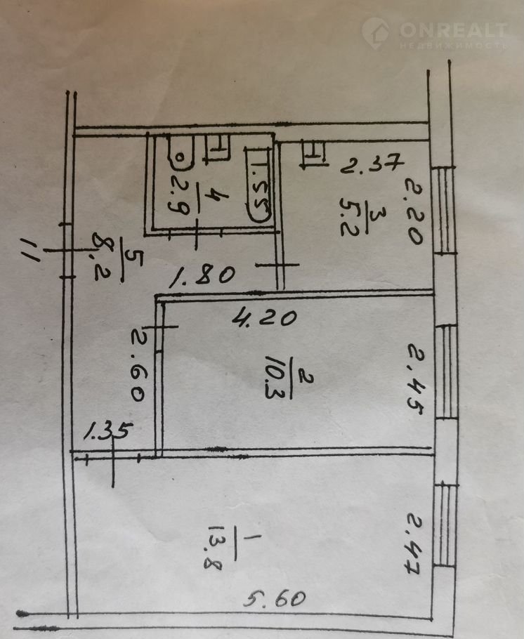 Площадь кухни 5.2 м2