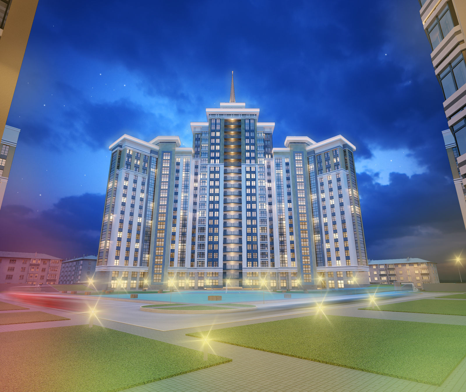 Комплекс представляет собой 12 блок-секционный жилой дом. 1,2,3 блок-секции -каркасно-монолитные разной этажности. 4-12 блок-секции - кирпичные,12-ти этажные.