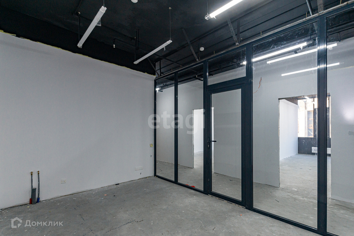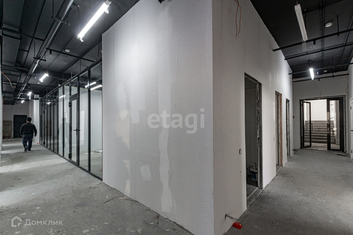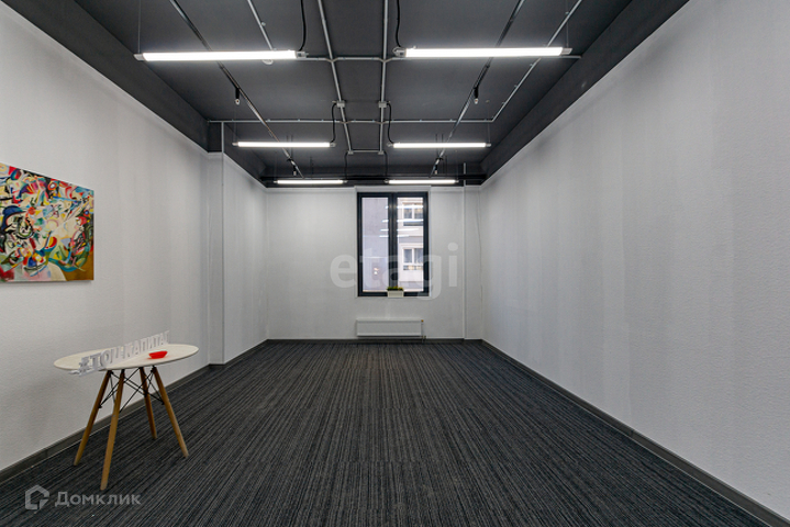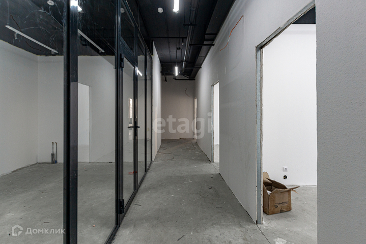 Чистовая отделка, потолочное освещение, напольное покрытие ковролин, алюминиевое витражное остекление, имеется вывод под мокрую точку.