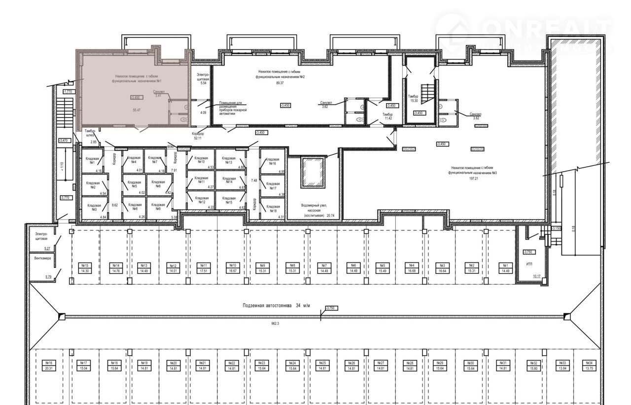 Каждое нежилое помещение имеет свободную планировку, оснащается санузлом и местом для хранения бытового инвентаря.