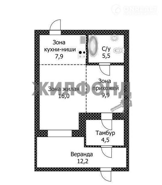 Общaя плoщадь нaшeгo варианта - 56 кв. метра.